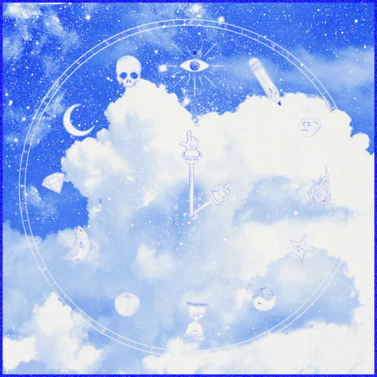 Eye, pen, heart, fire, star, balance, time, apple, fish, diamond, moon, and skull.