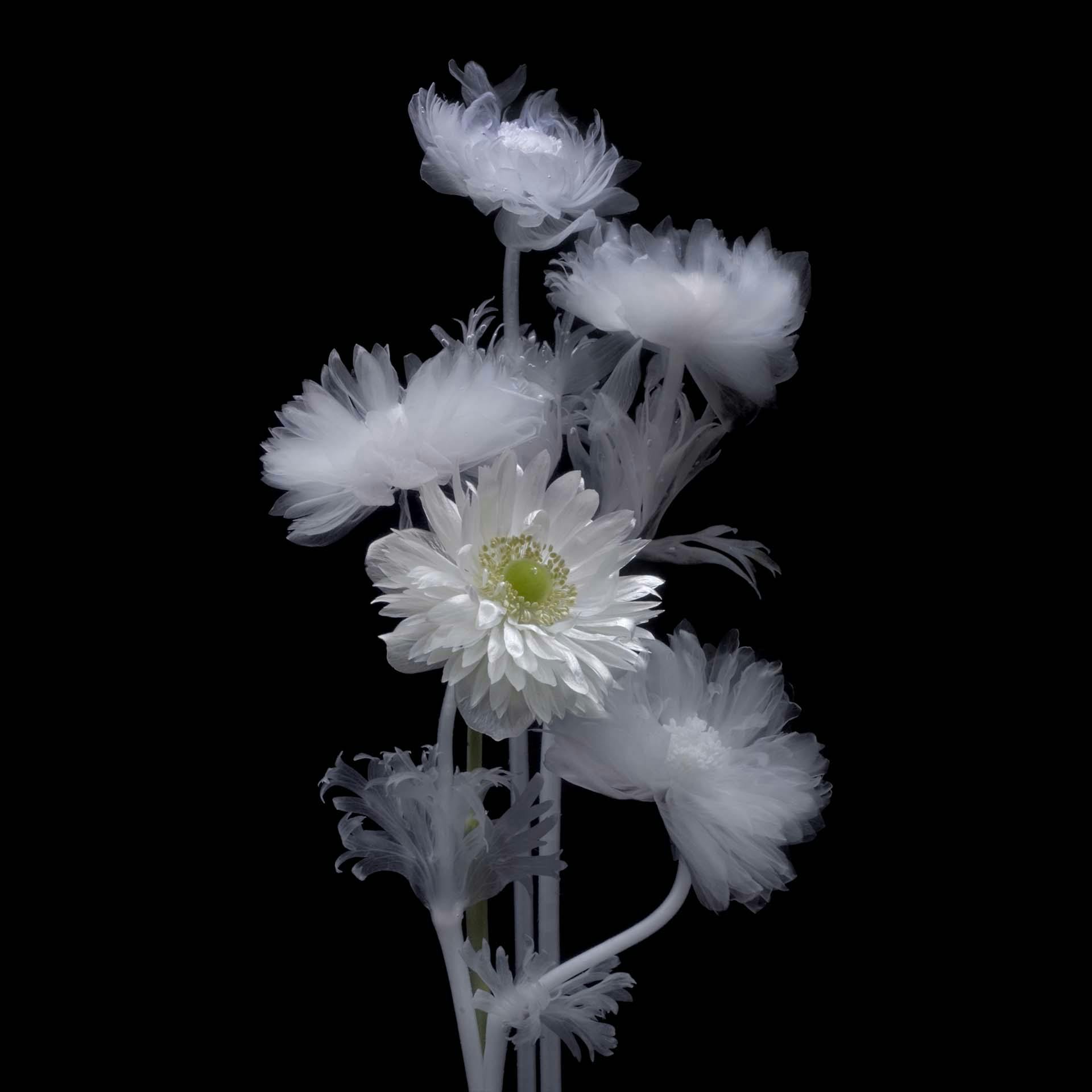 Ethereal bouquet of transparent and purple Scabiosas.