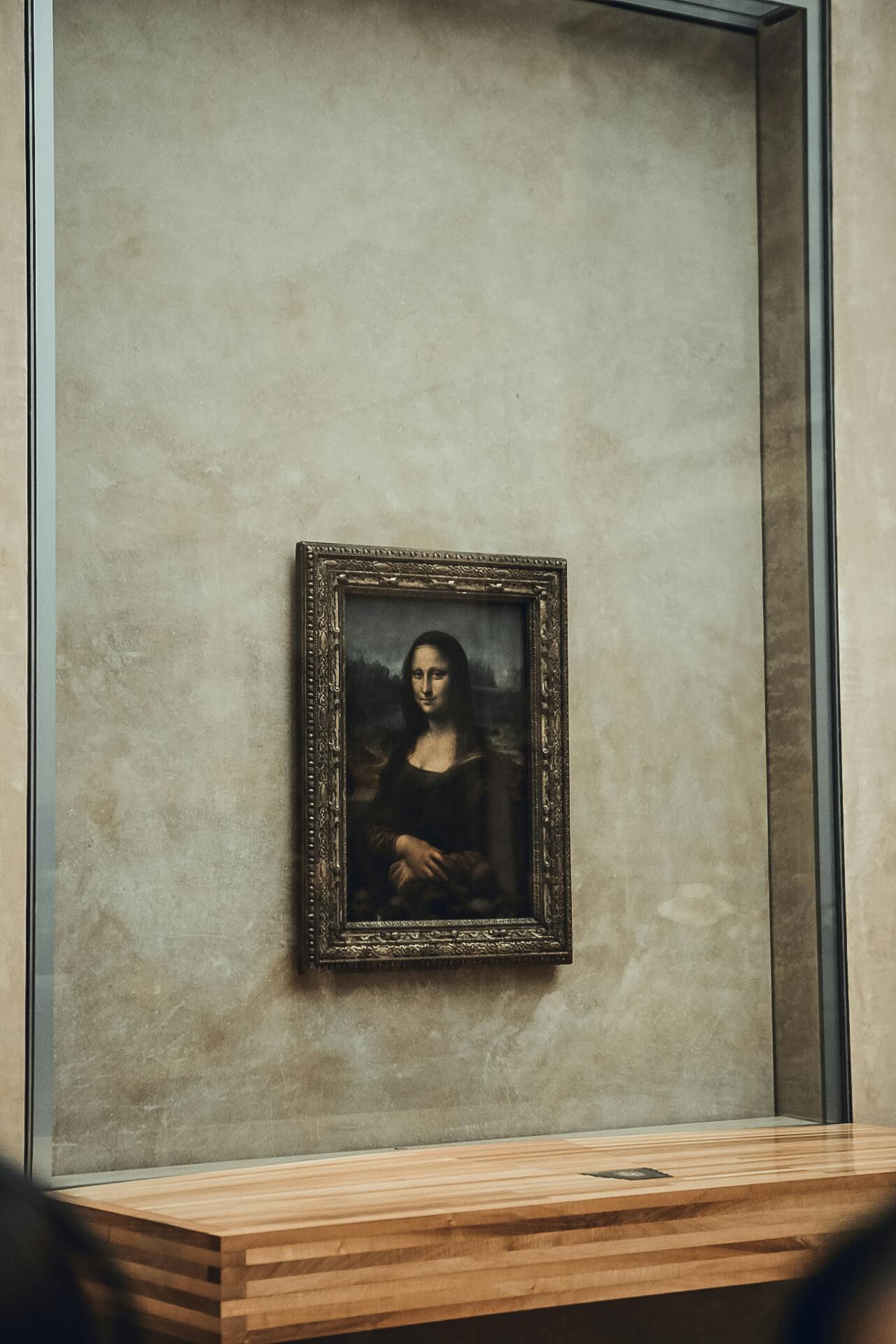 The original Mona Lisa behind bullet proof glass at the Louvre in Paris which has on display since 1797.