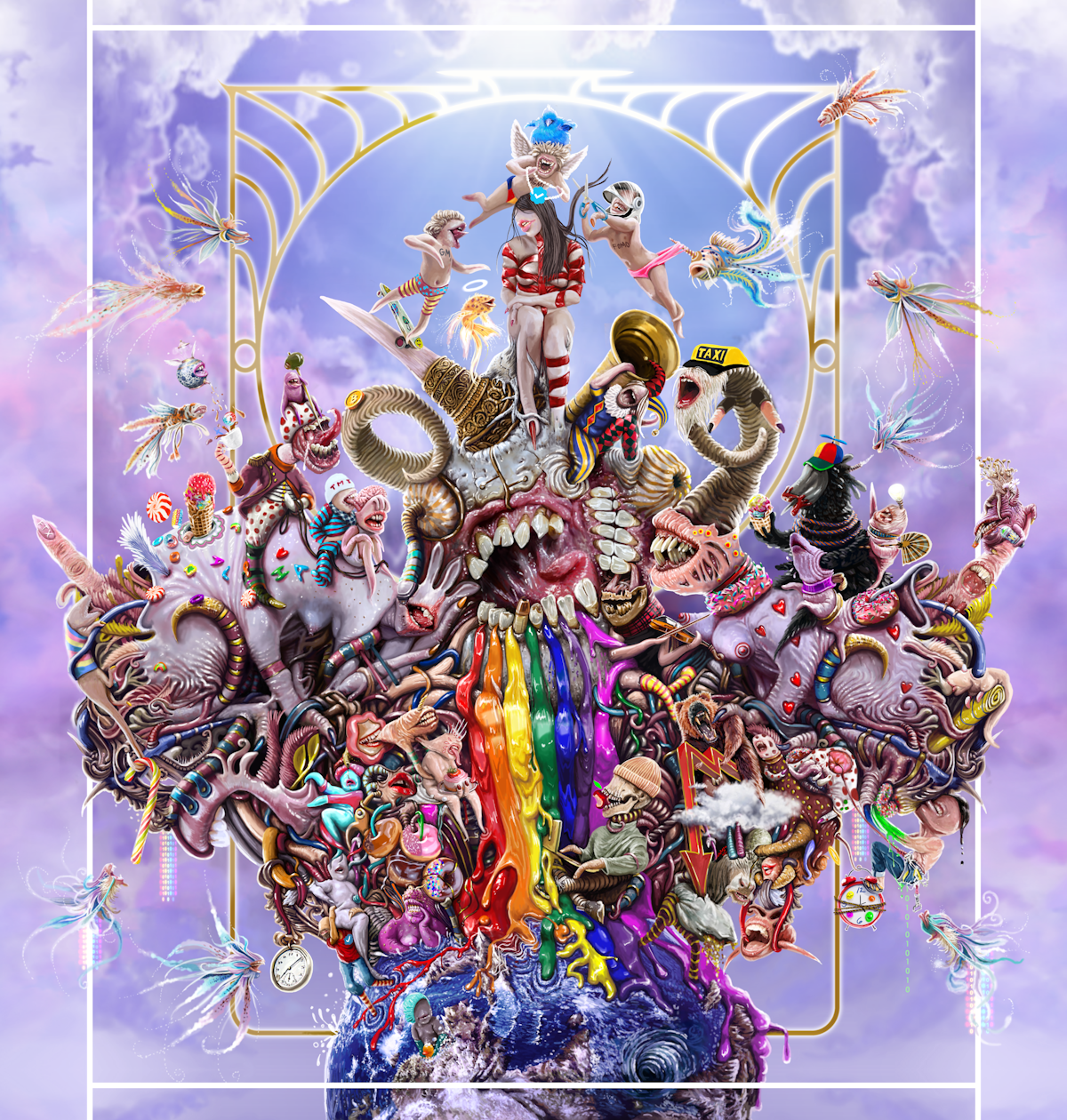 So this is where my heART showcases a parody of these belief systems with the amalgamation of a social culture of conformists and influencers as well as its cognitive dissonance, if not it's anti in the purest form. My attempt is too unconsciously and cognitively shortlist pop culture references as well as inert personal emotions into a cluster of chaotic lumps.