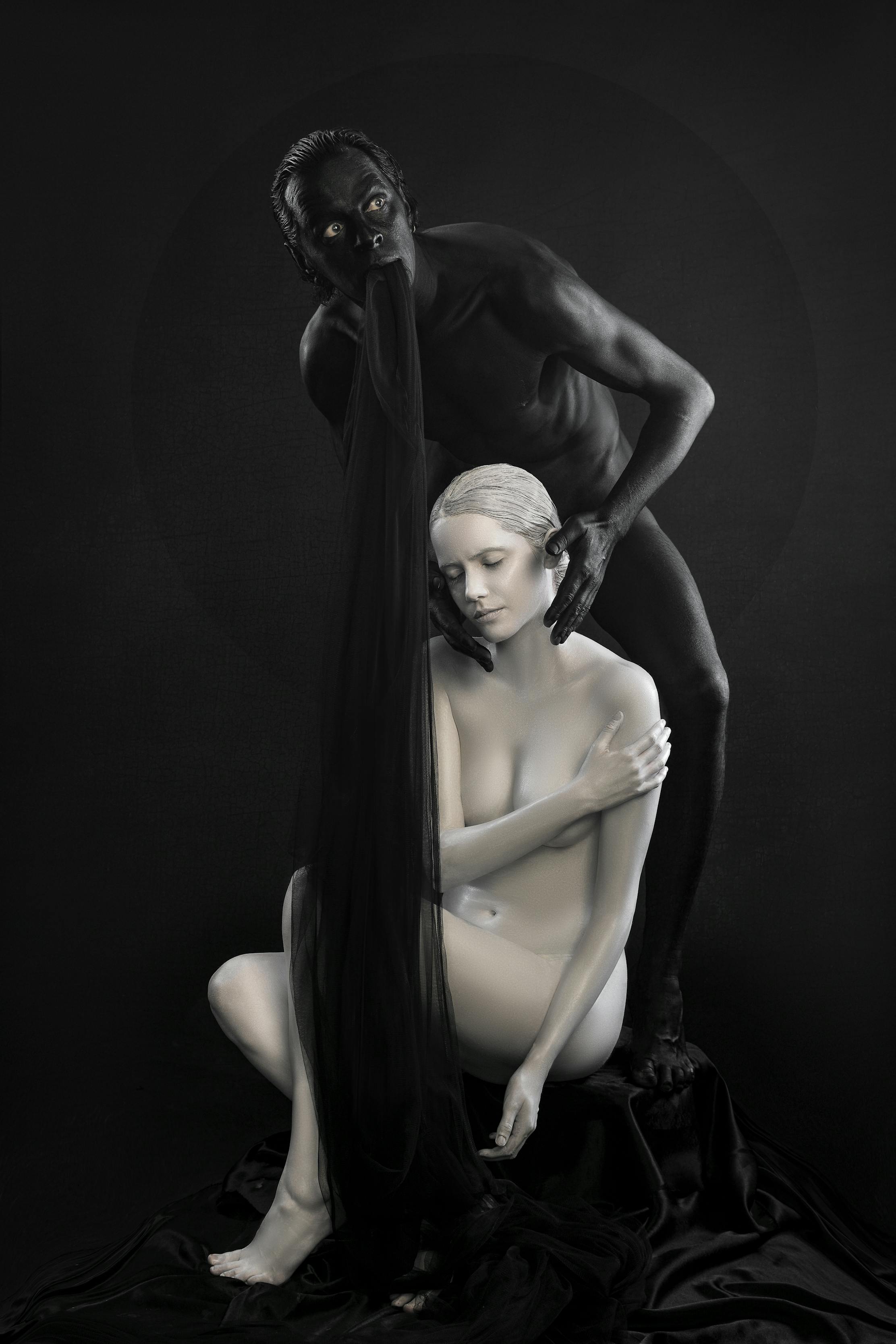 That resulted in a lengthy shoot, about 8 hours including the bodypainting, and a cumbersome editing process, in order to eliminate all imperfections and areas of contagion between black and white surfaces, to achieve a level of perfection close to computer generated 3D models.