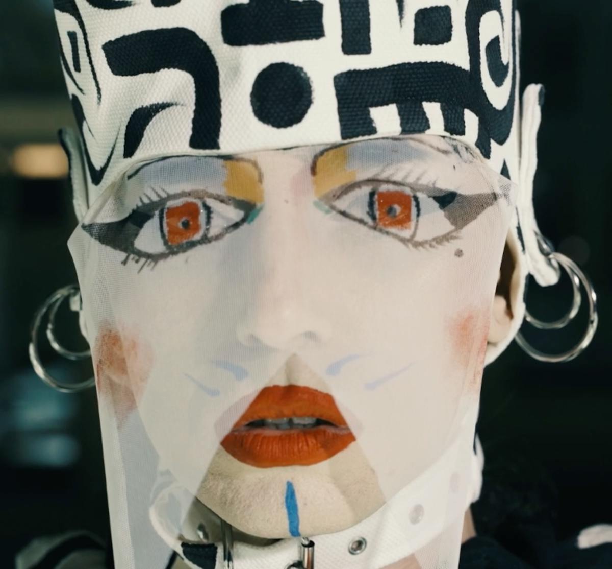 The costume I wear in this piece is a fabric that I hand-painted and was sewn by the designer Don Aretino & headpiece by Lorenzo Seghezzi