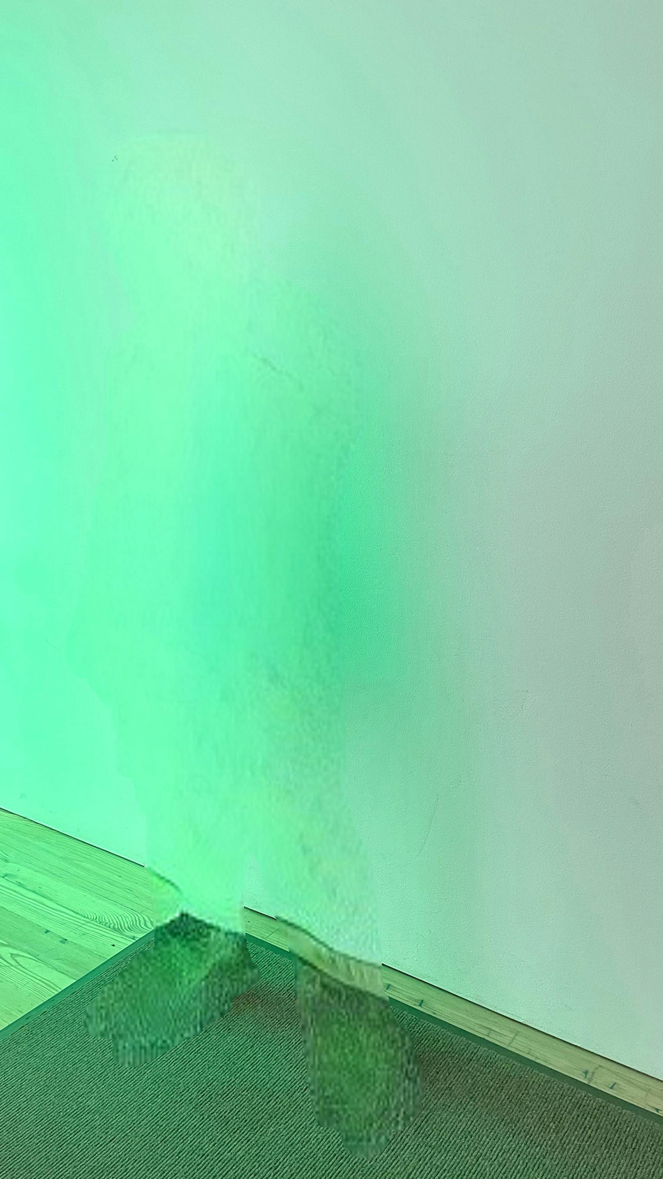 This work is part of the series 'Nude study' in which I record images with the Bye Bye Camera — an app I created. The mobile application uses neural networks to erase humans from pictures, but the camera maintains human traces. I compare these visual traces to surreal artifacts of a speculative scenario that is post-human.