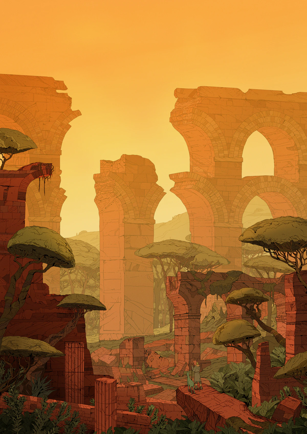 Somewhere in the bowels of a decaying starship, a pilot guides the gothic hulk in for its final landing