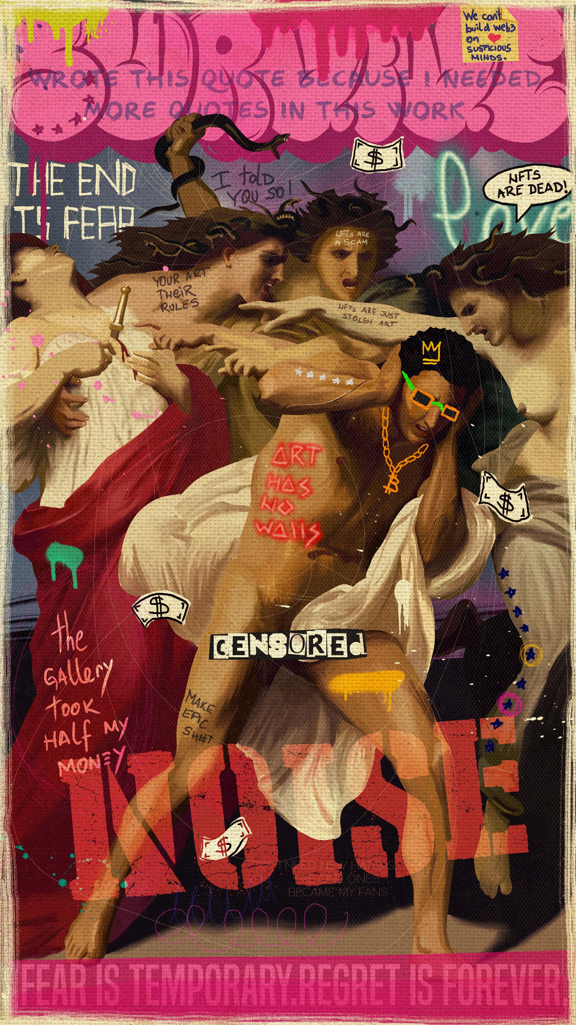 NFTs are a scam, a ponzi scheme, stolen art, a grift, something that anyone could have done, a fad, overpriced jpegs. Are you paying attention already? Create, mint, repeat. Fear is temporary, regret is forever. Turn off the noise.