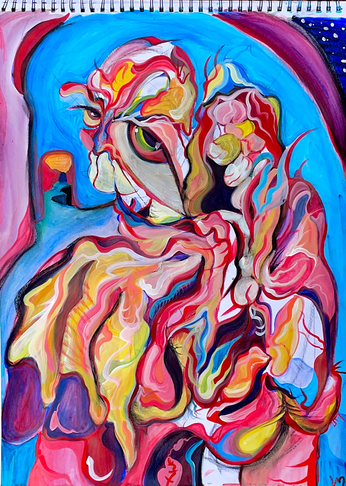 - Acrylic and Charcoal on Paper, created in 2022 by LUZ
