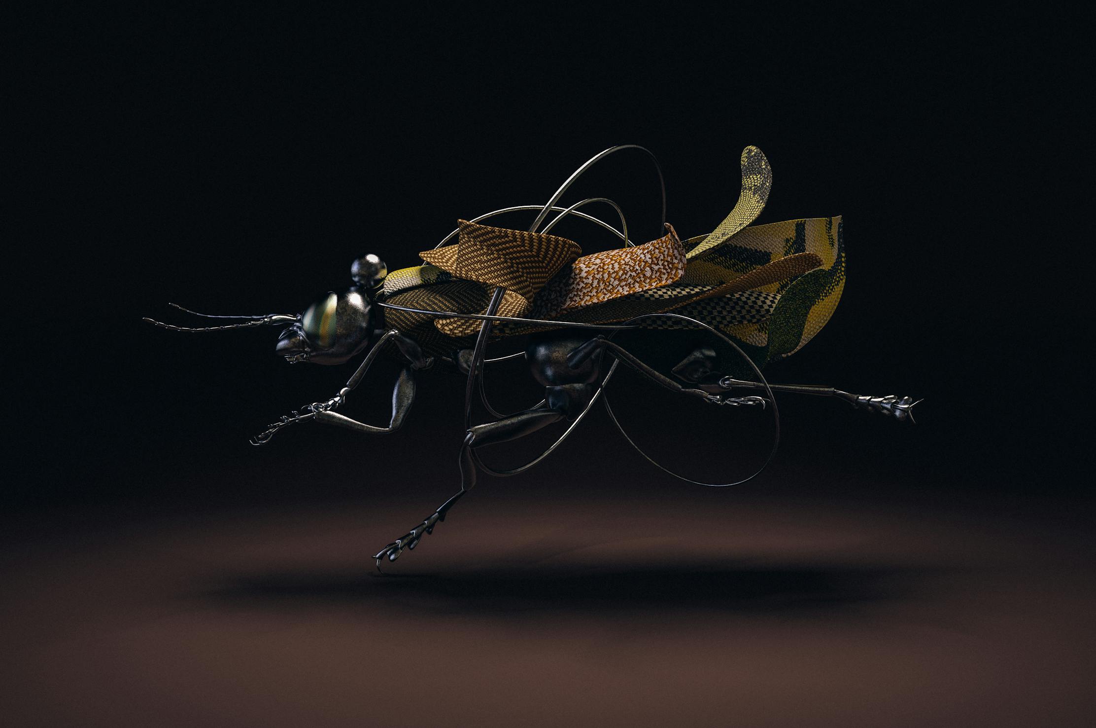 CECROPIA - is a project in which we have designed several insects mutated by geometric shapes and elements as fabrics, metallic and organic structures changing their morphology.