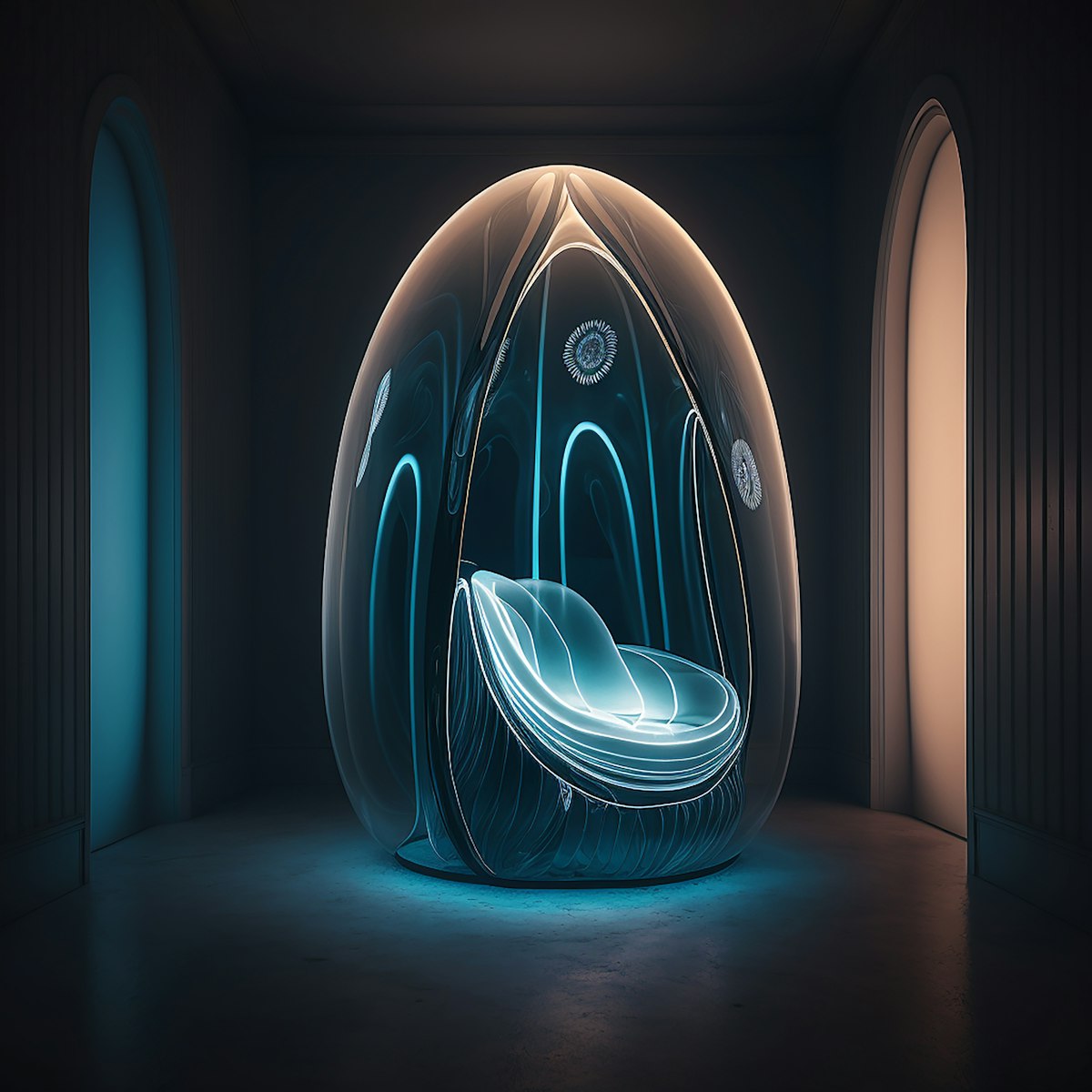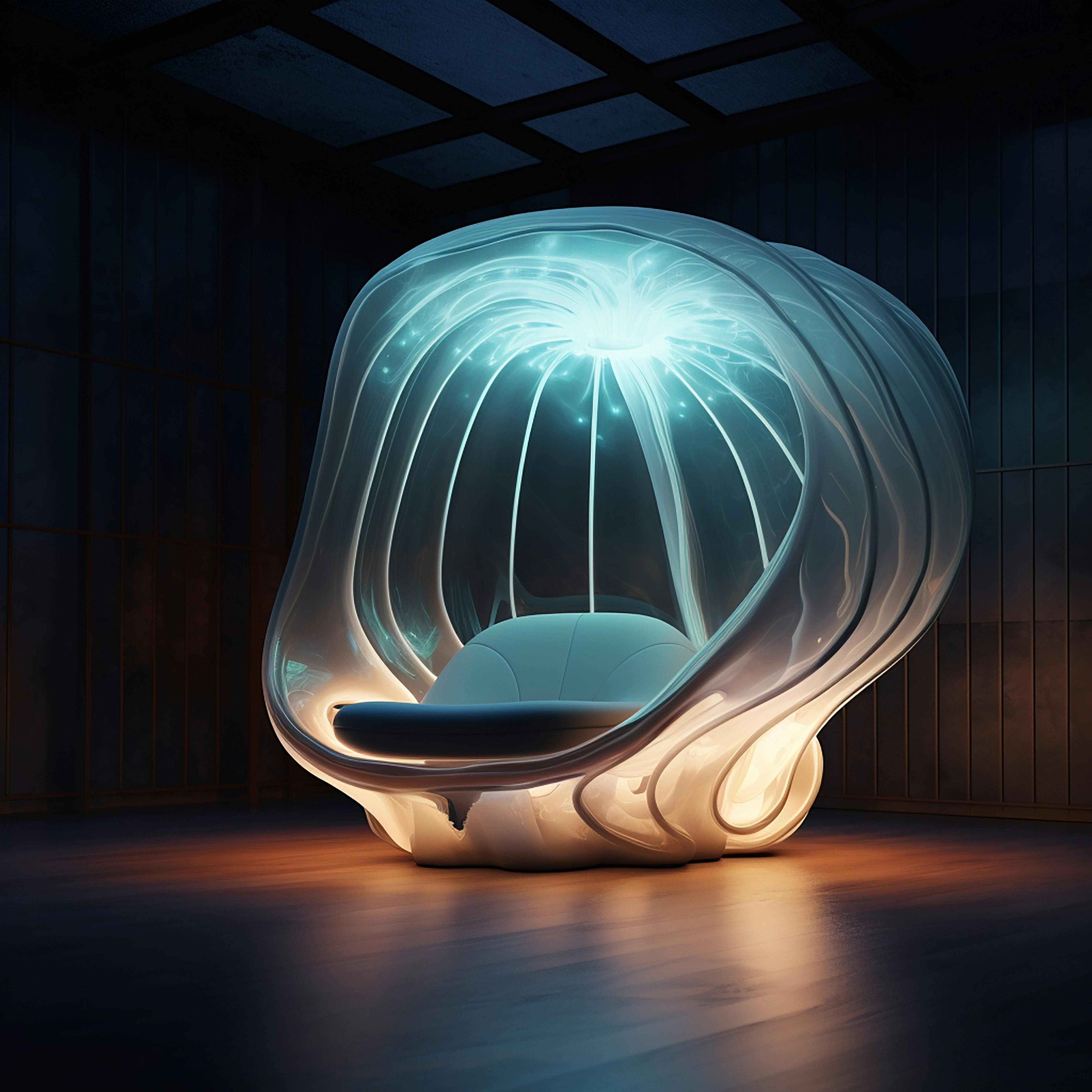 Mars House NFT physical furniture pieces, made of tempered printed glass in Italy, may be commissioned by the collector as NFT physical pieces.