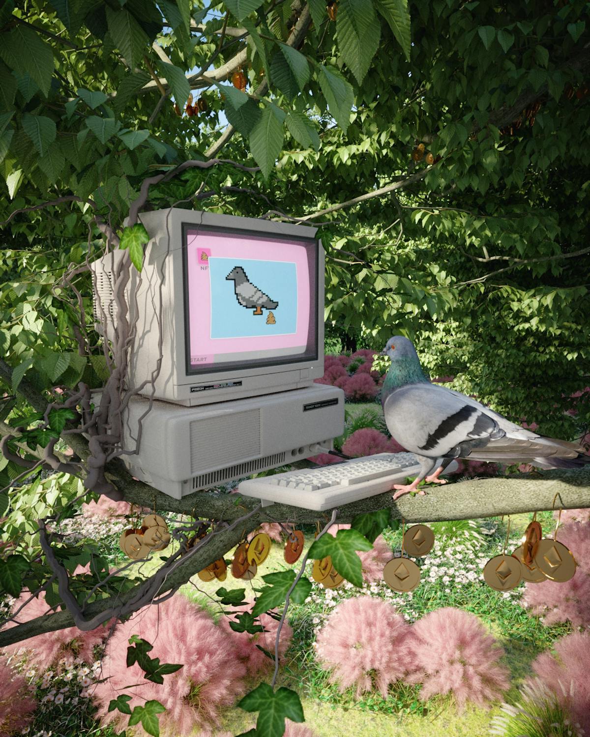 Sound is a must when viewing this piece. “Pigeon Precision” is intended to poke fun at the oversaturation of the NFT art market, and many other topics related to NFTs including speculation, volatility, scammers, and cash-grabs. To me, this piece reflects the current state of early NFT culture, as the market and community is very much still maturing and developing. The NFT scene can be a bit chaotic and stressful, but it’s so fascinating and fun to be on the forefront of emerging technology and the new epoch of art. The message of this piece is essentially to not take NFT-life so seriously, and to have fun, learn, take your time, and grow into the artist and/or collector that you want to be.