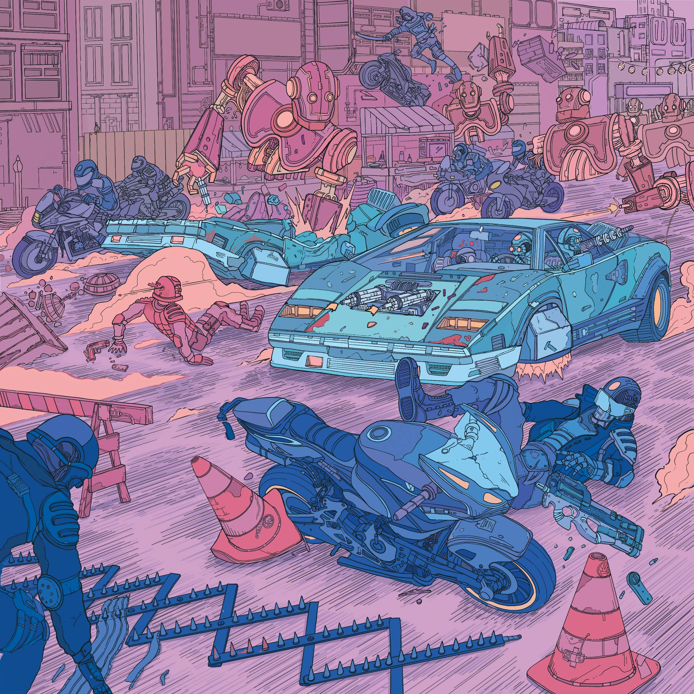 Cyberpunk Ligne-Claire style illustration. Created as an artistic study and exploration of three artists: Geof Darrow, Moebius, and Josan Gonzalez.