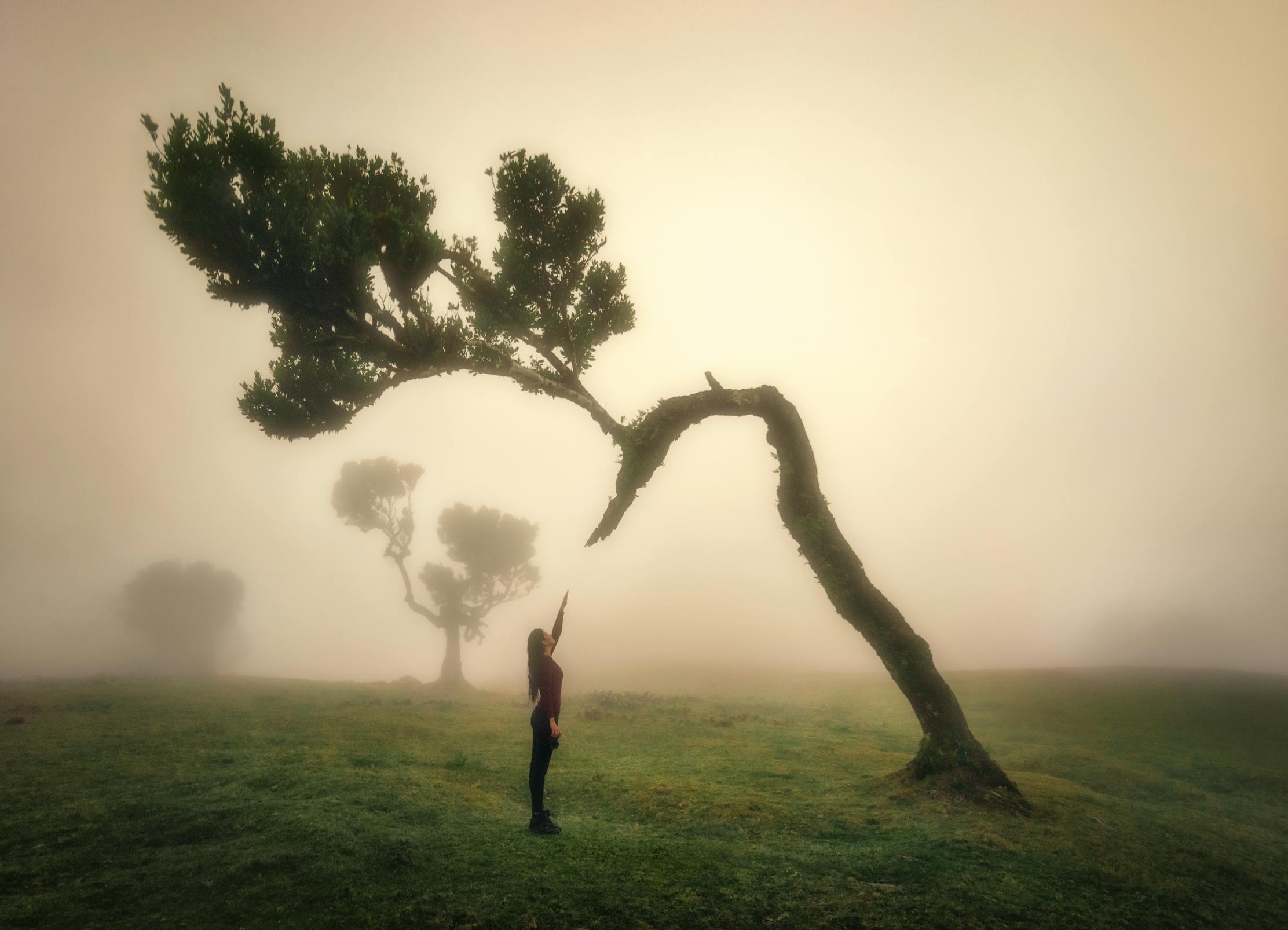 Story: Every day she would raise her arms towards the forgotten ones, clamoring for forgiveness for the incomprehensible unconsciousness of her own kind. Screaming in desperation, she felt and realized we had forgotten our house, and so also ourselves./ After unending days trying with no success to listen to the lessons brought by the Earth, the cold of disillusion took hold of her body, and the total lack of hope turned into tears, falling slowly into the fertile soil of that unique place./ And it was in this moment of sharp pain and hopeless tight chest, that she finally became one with the elements around her, finally leading those ancient, sentient and wise trees to bow towards her, to speak about the things that had to be said, an unforgettable voice from those she thought to have no voice…/ But was it already too late?/ ------------- | # Location: UNESCO World Heritage Laurissilva Forest, Madeira Island, Portugal | # Model: Adriana Santos (Forest Bathing Guide, Occupational Therapist, Psychedelic Assisted Therapist, Photographer) | # Technique: single exposure photo, no photo-composite | # Image curated for exhibition at the Envisionary Art Lounge at Boom Festival 2022 (Portugal), based on the main theme "Anthropocene". | # NFT Carbon footprint is 100% compensated through "Offsetra" and/or Give Back to Nature Reforestation Project | # Physical large format print available upon request
