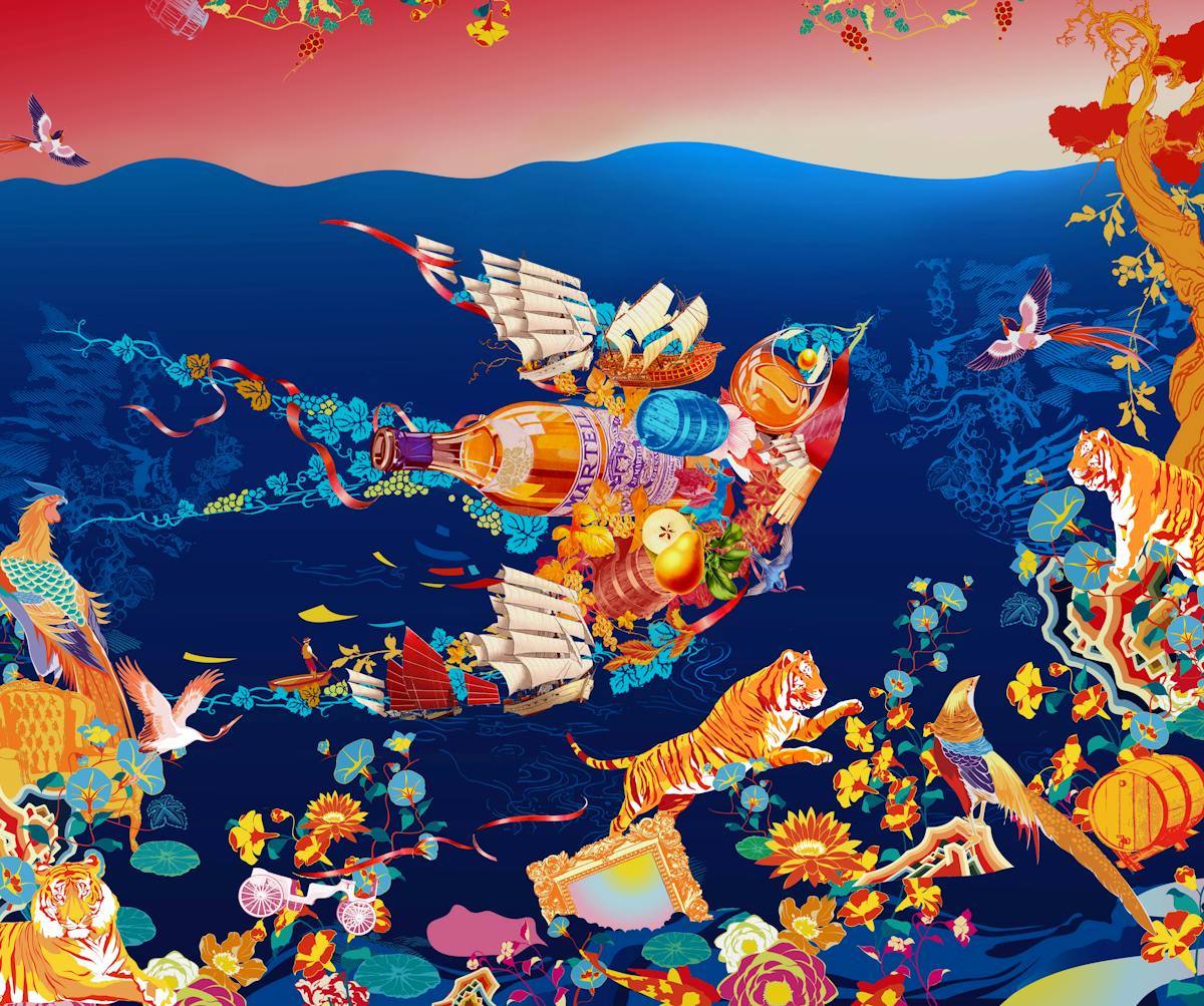 A spectacular 3D animation centered on Jacky Tsai’s dynamic, contemporary vision of the swift, the historic emblem of Maison Martell, which symbolizes its spirit of daring and freedom. A bird unlike any other, the swift spends almost its entire life in the air, barely ever touching the ground. Famed for its ability to fly far and fast, it soars over land and sea, knowing no frontiers. Demonstrating his signature bold use of color and collage, Jacky Tsai has reimagined the swift with elements drawn from Maison Martell’s rich heritage.