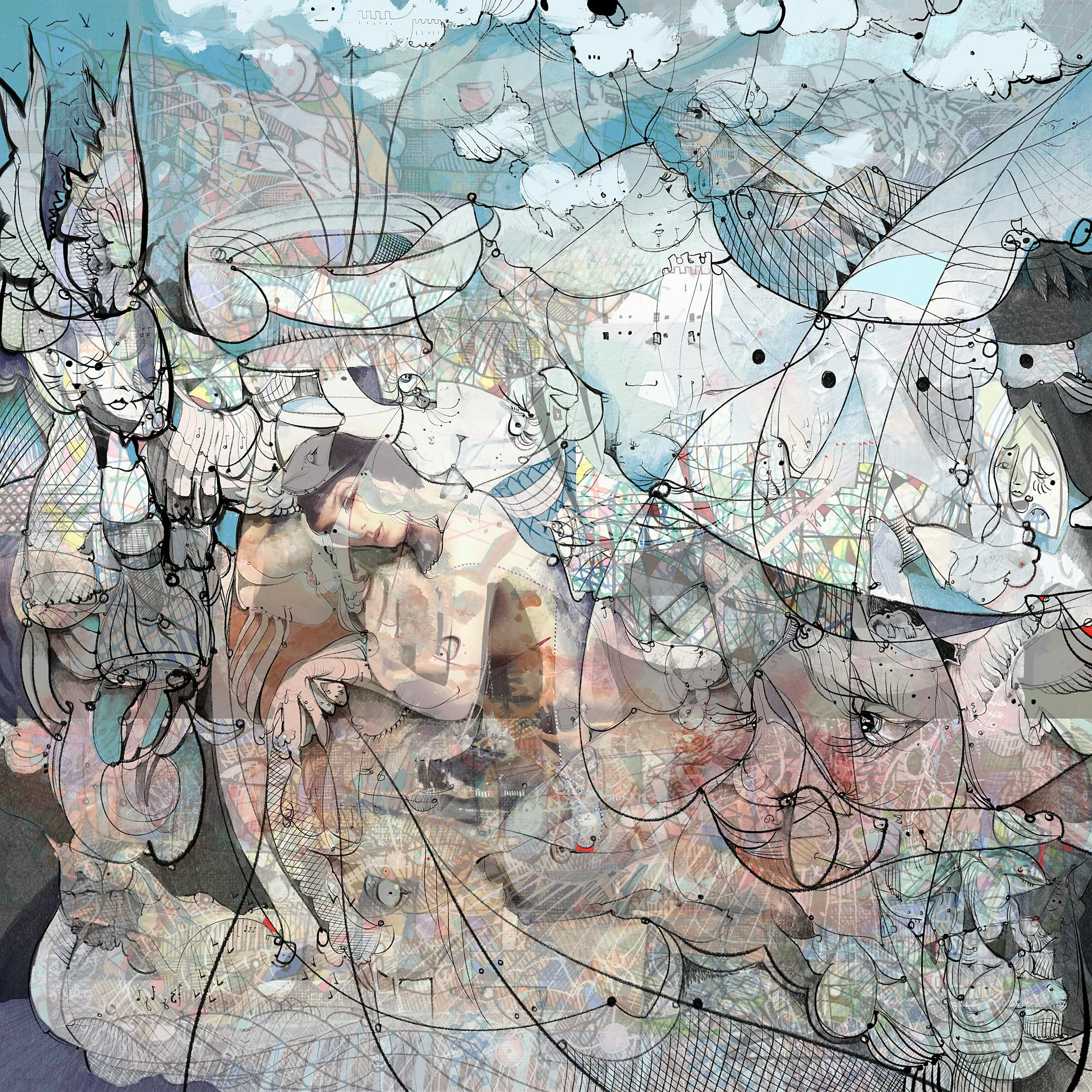 First piece on Super Rare, The Working Dream, 8000x8000px. This piece began in analog form from cutting apart one of my drawings and applying it to one of my acrylic and oil paintings on panel. I scanned that piece and continued the process in digital form over the course of a few visits, letting my head and hand just run. In this piece, the networks of lines tying together imagery that can seem to shift with scale was a product of thinking about the combination of work and dreaming- more so the waking kind, about the future- and how so often it's an oscillating mixture of both that shapes the course of life. I'm honored to join the Super Rare community and excited to post more brand-new work. Thanks for viewing!