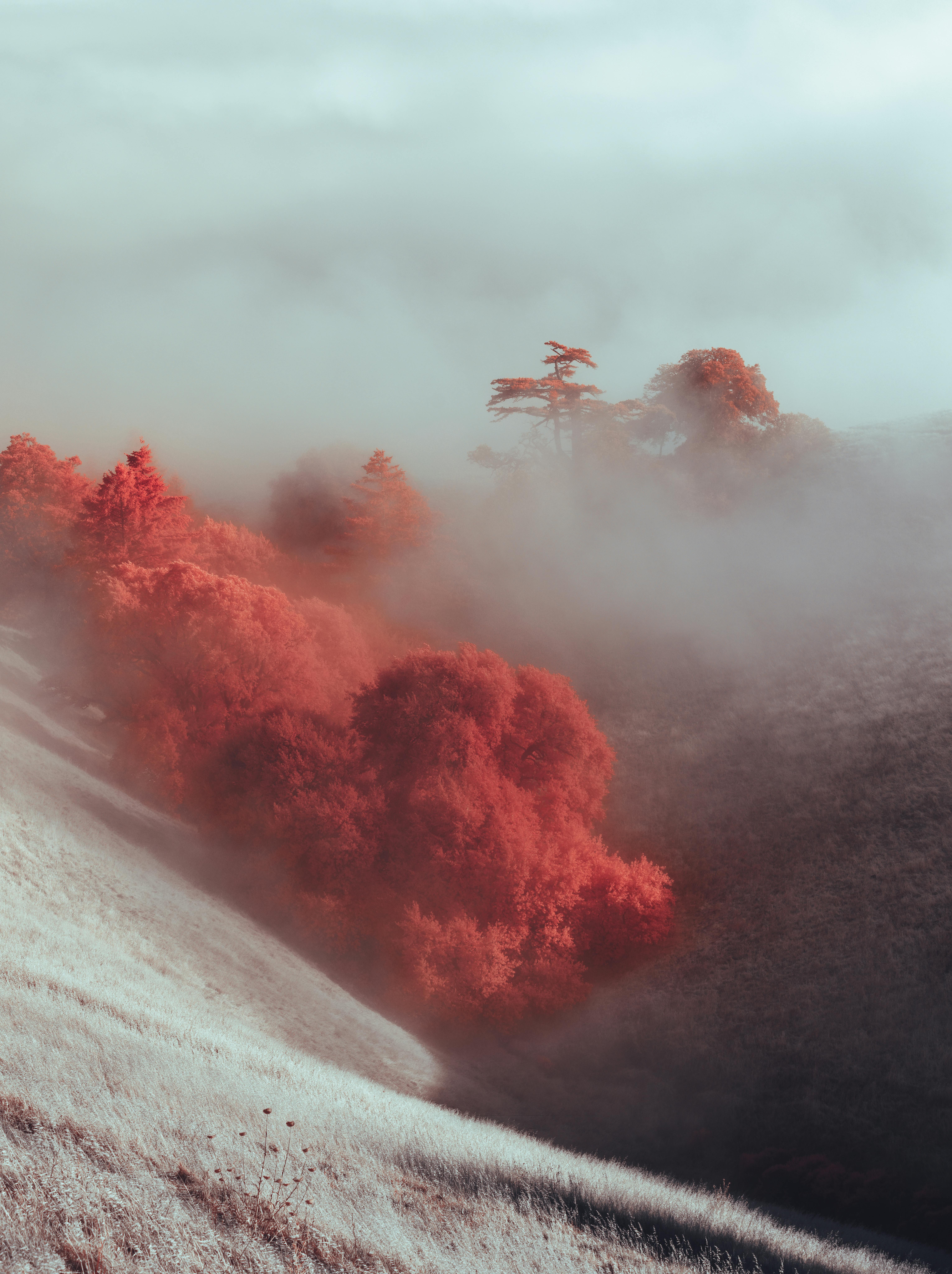 In this second installment of the ‘Spectrum Series’ we explore the domain of HyperColor. Within the composition is an emergent cove of Oak Woodlands that are blanketed by the streaking fog, as the principles of time and space are blurred beneath this golden atmosphere. We observe the heartbeat of nature’s movement, rich with saturation, the vivid tones a celebration of a photographic technique and palette uniquely characteristic to this Invisible Spectrum of Light.