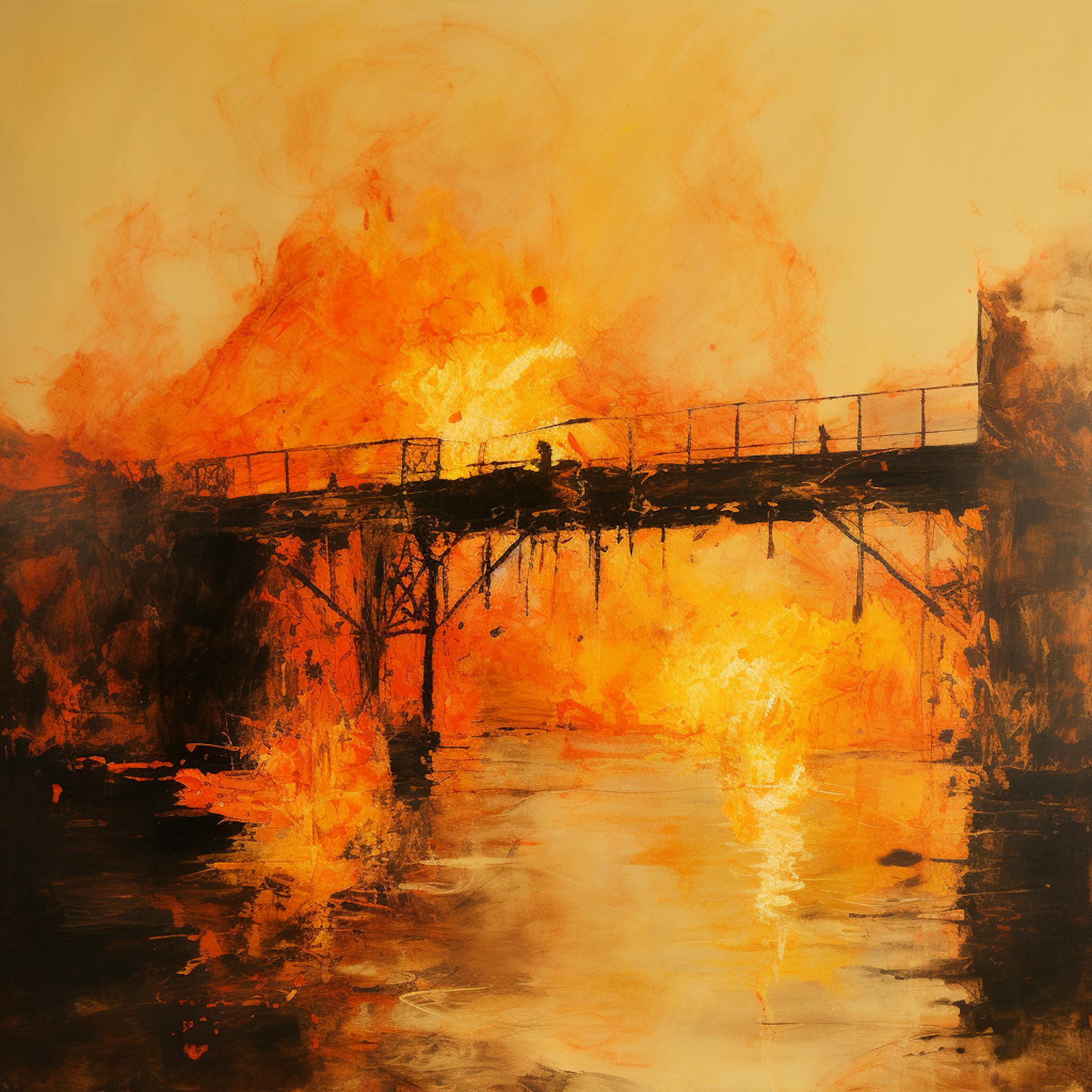 Contrasting the gigapixel intricacy of my signature work, this collection embraces the ethos of "Low Effort NFTs," staying true to AI's default resolutions and resisting the urge to upscale. Conceptually, however, I was unable to abide to low effort. Within the crypto realm, both 'bridge' and 'burning' resonate with literal and metaphorical significance. Each of these 250 NFTs, on one level or another, grapples with the theme of burning bridges—often taboo in many cultural circles, yet an essential tactic in wars and the most genuine revolutions of both culture and the soul of individuals yearning to break free from extractive systems of co-option.