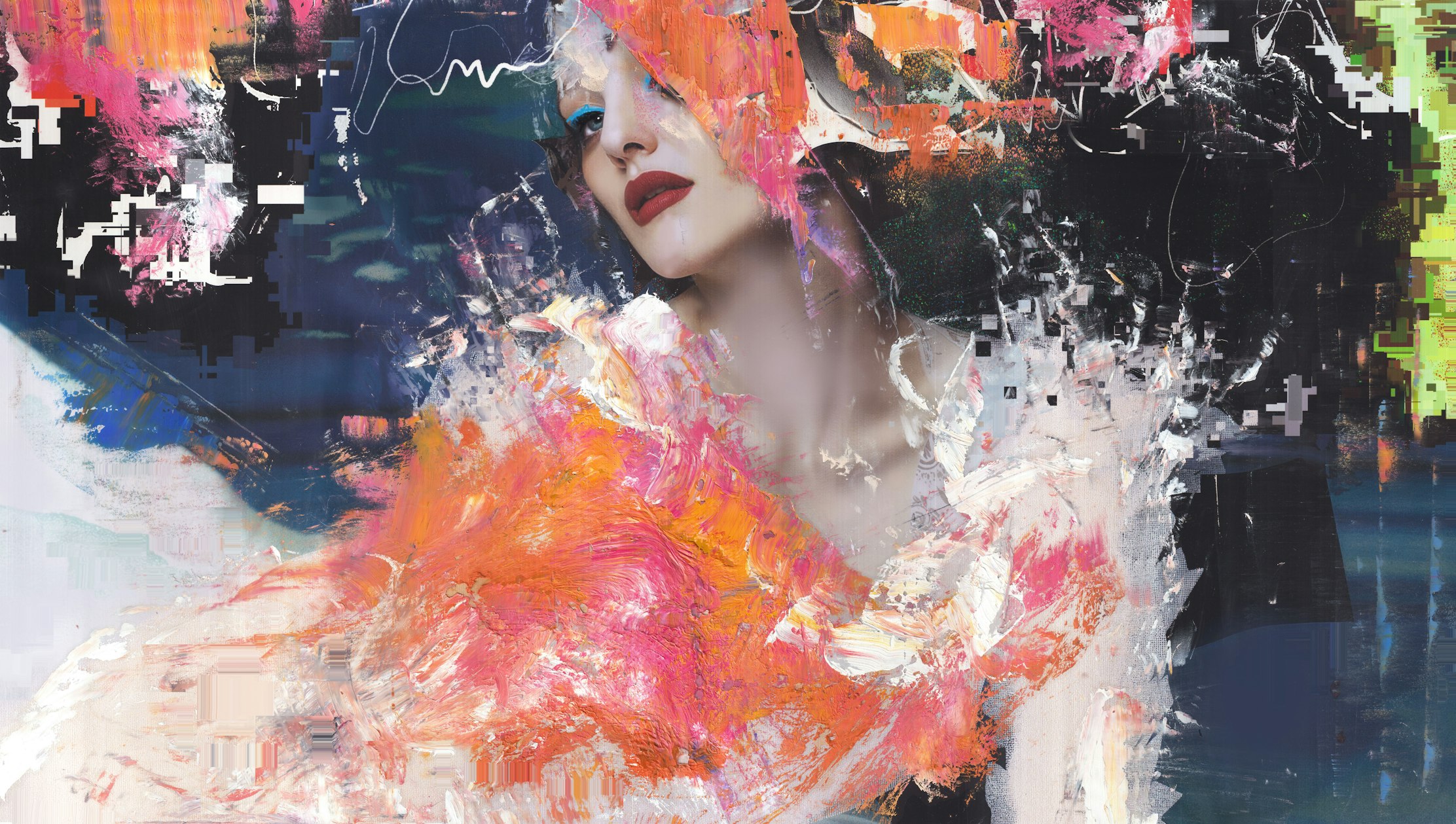 The vibrant abstract oil paint strokes interwoven with digital glitches symbolize the collision of tradition and innovation, embodying the young queen’s journey from her historical roots into the luminous possibilities of her future. Created through a unique collaboration between human creativity and AI, this digital artwork offers a profound reflection on the delicate balance between historical grandeur and the inexorable march of technology, capturing Marie Antoinette's spirit at the cusp of her digital destiny.