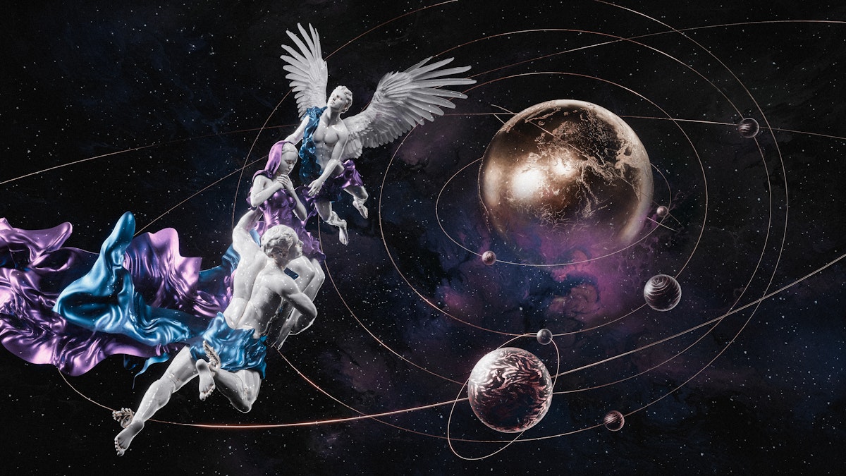 "Gravitas Mundi," which translates to "the weight of the world" in Latin, stands as an artwork heavily inspired by the theme of Atlas carrying the world. The figure is depicted in flight, moving towards a golden globe, and ultimately lifting it. The pose finds its inspiration from the depiction of Giorno, as illustrated by Hirohiko Araki. The artwork signifies the forthcoming Digital Renaissance worldwide, while subtly showcasing the rebirth of art in the digital realm.