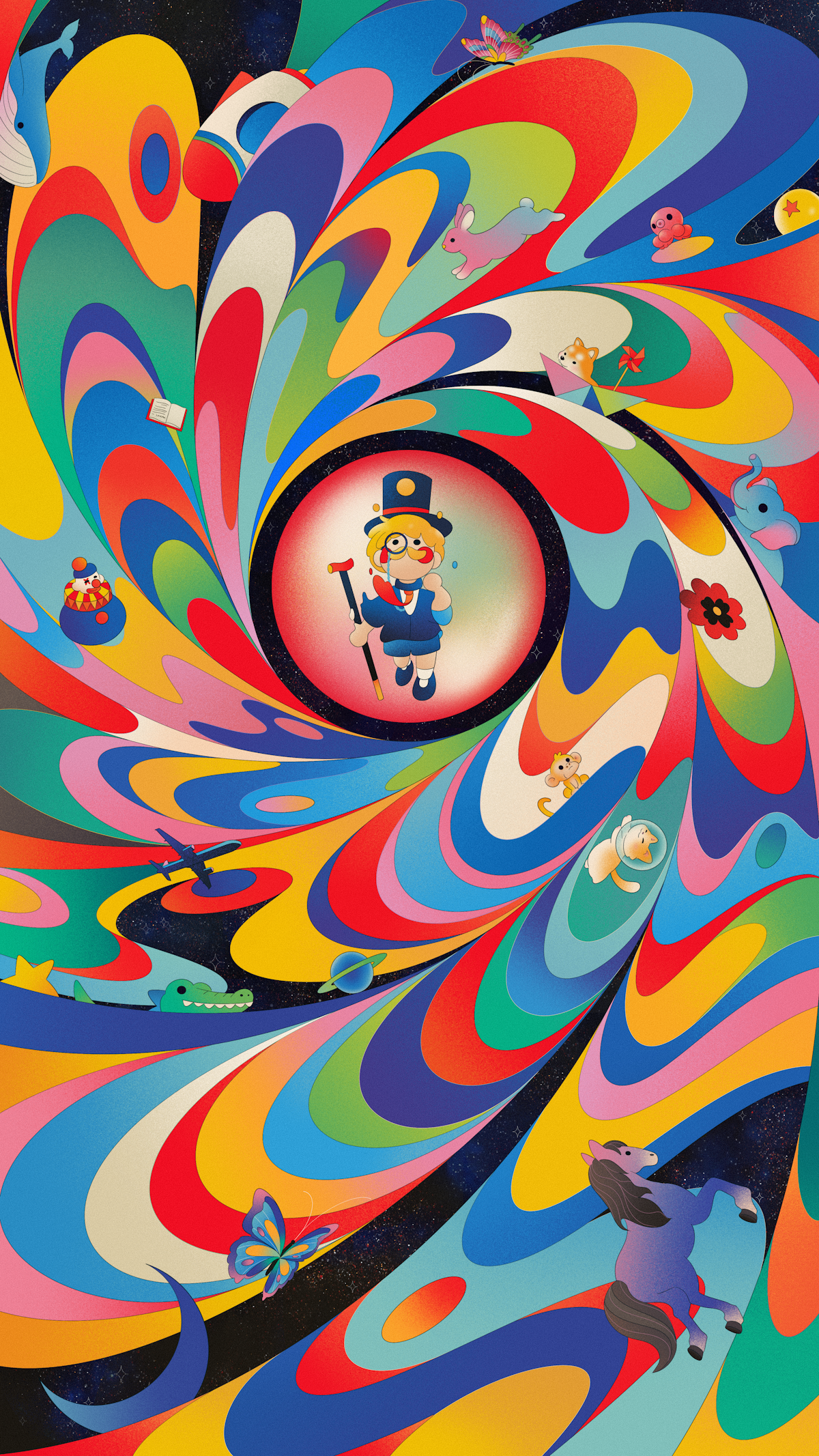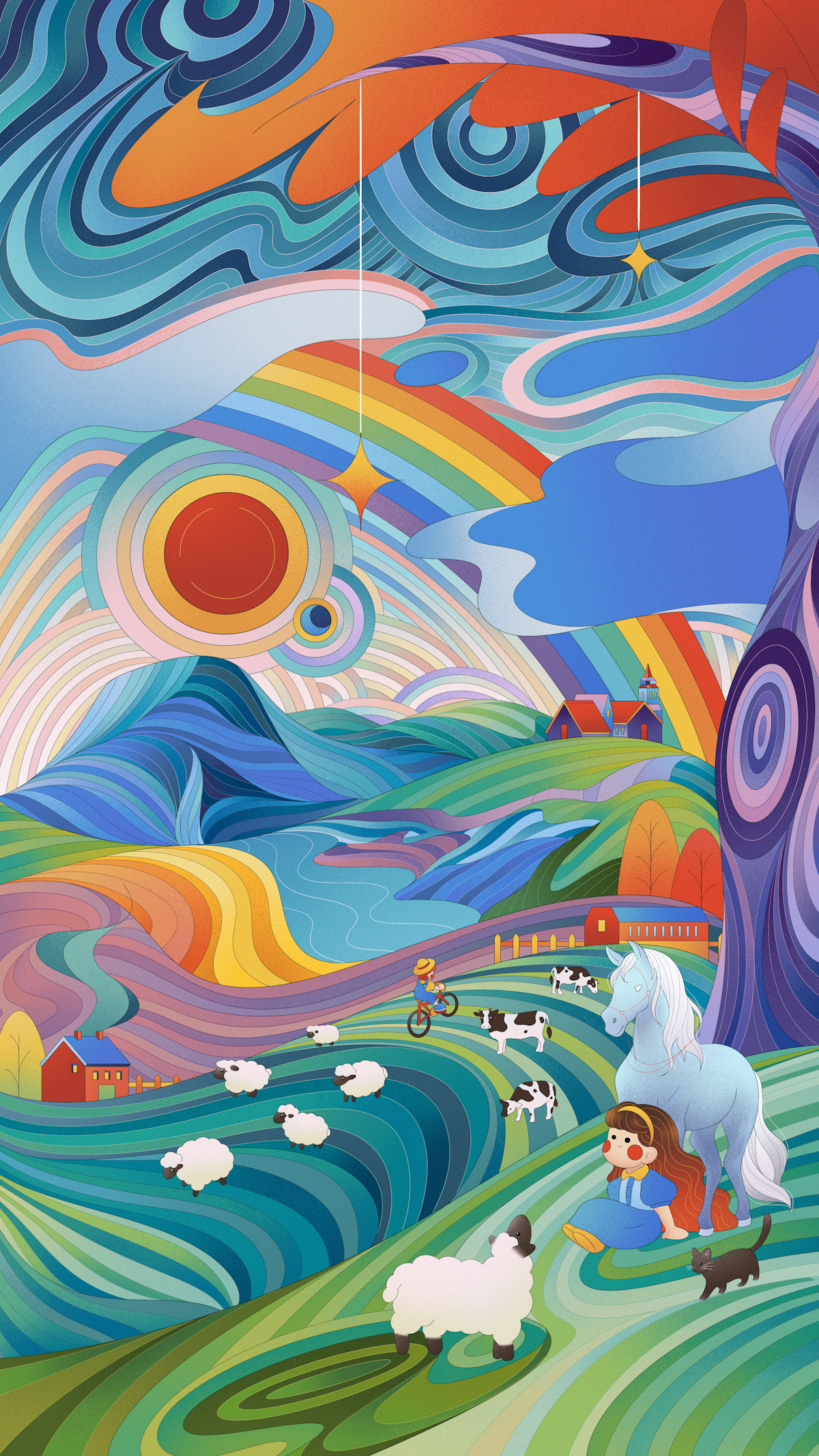 A bright red fruit floats high above, glowing like a promise and possibility.