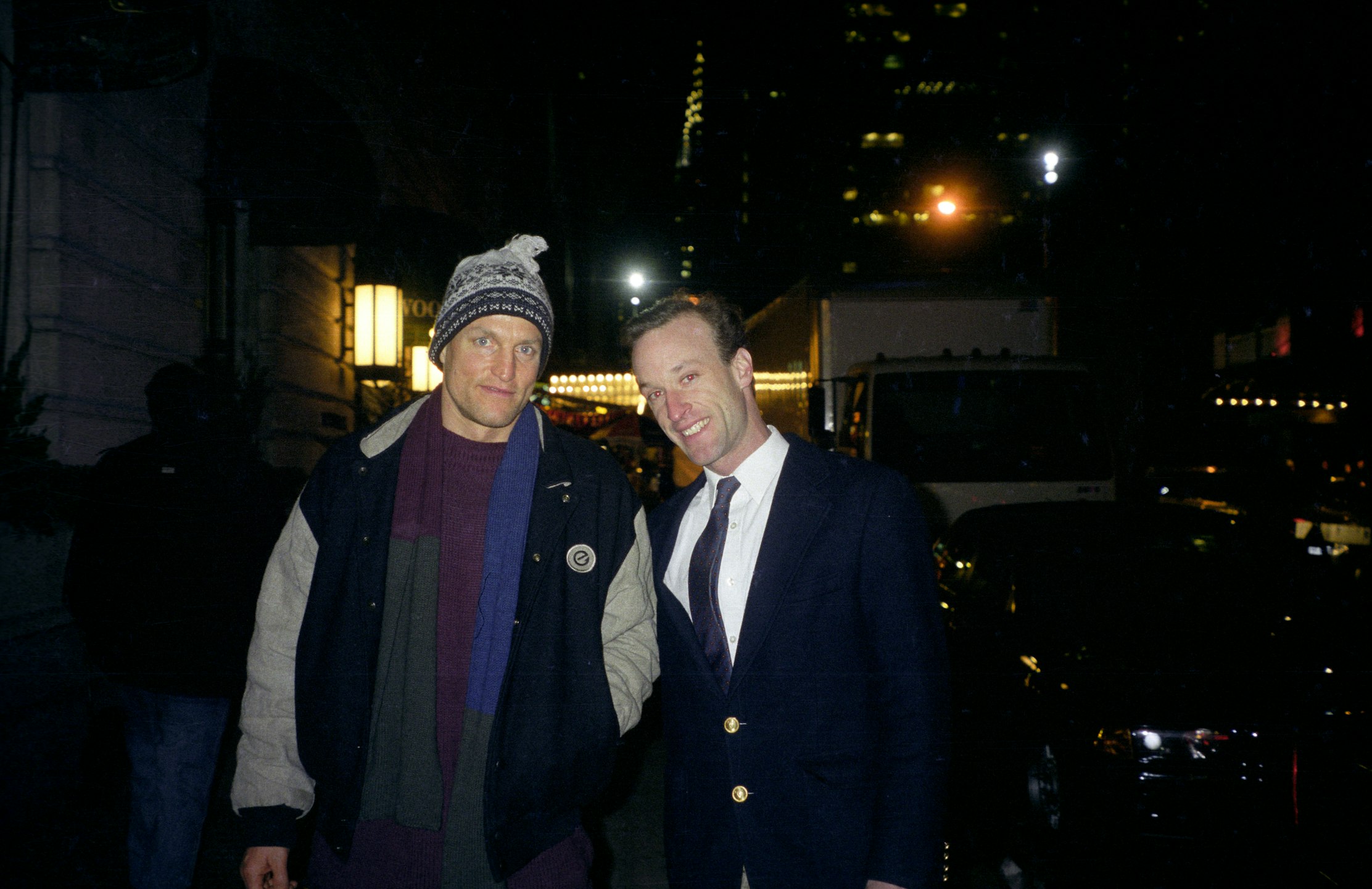 VONFURSTIMPRESSIONS Series 1999-2000. Alex with Woody Harrelson, November 15, 1999 "Seconding The First" benefit, Laura Belle. As an immersive work of interventionist performance art, I went undercover for one year at night posing as famed fashion designer Diane Von Furstenberg's son, Alex. Using the name and a cheap vintage $20 suit "Alex" infiltrated hundreds of high profile celebrity parties in NYC in 1999 and 2000, meeting scores of luminaries such as PDiddy, Ivana Trump and even the President at the time, Bill Clinton and First Lady Hillary Clinton. The whereabouts of the celebs were gleaned from public information; the Gossip pages of The New York Post and the Daily News. Sixty photographs make up the limited edition VONFURSTIMPRESSIONS Photo collection. All the photos were taken by handing a 35mm point and shoot camera to strangers in the vicinity, an homage to Duchamp’s ideas of chance operations.