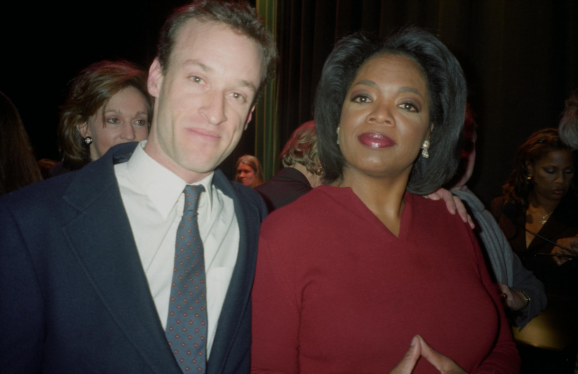 VONFURSTIMPRESSIONS Series 1999-2000. Alex with Oprah Winfrey November 18, 1999 Marie Claire "What Women Want" party. As an immersive work of interventionist performance art, I went undercover for one year at night posing as famed fashion designer Diane Von Furstenberg's son, Alex. Using the name and a cheap vintage $20 suit "Alex" infiltrated hundreds of high profile celebrity parties in NYC in 1999 and 2000, meeting scores of luminaries such as PDiddy, Ivana Trump and even the President at the time, Bill Clinton and First Lady Hillary Clinton. The whereabouts of the celebs were gleaned from public information; the Gossip pages of The New York Post and the Daily News. Sixty photographs make up the limited edition VONFURSTIMPRESSIONS Photo collection. All the photos were taken by handing a 35mm point and shoot camera to strangers in the vicinity, an homage to Duchamp’s ideas of chance operations.