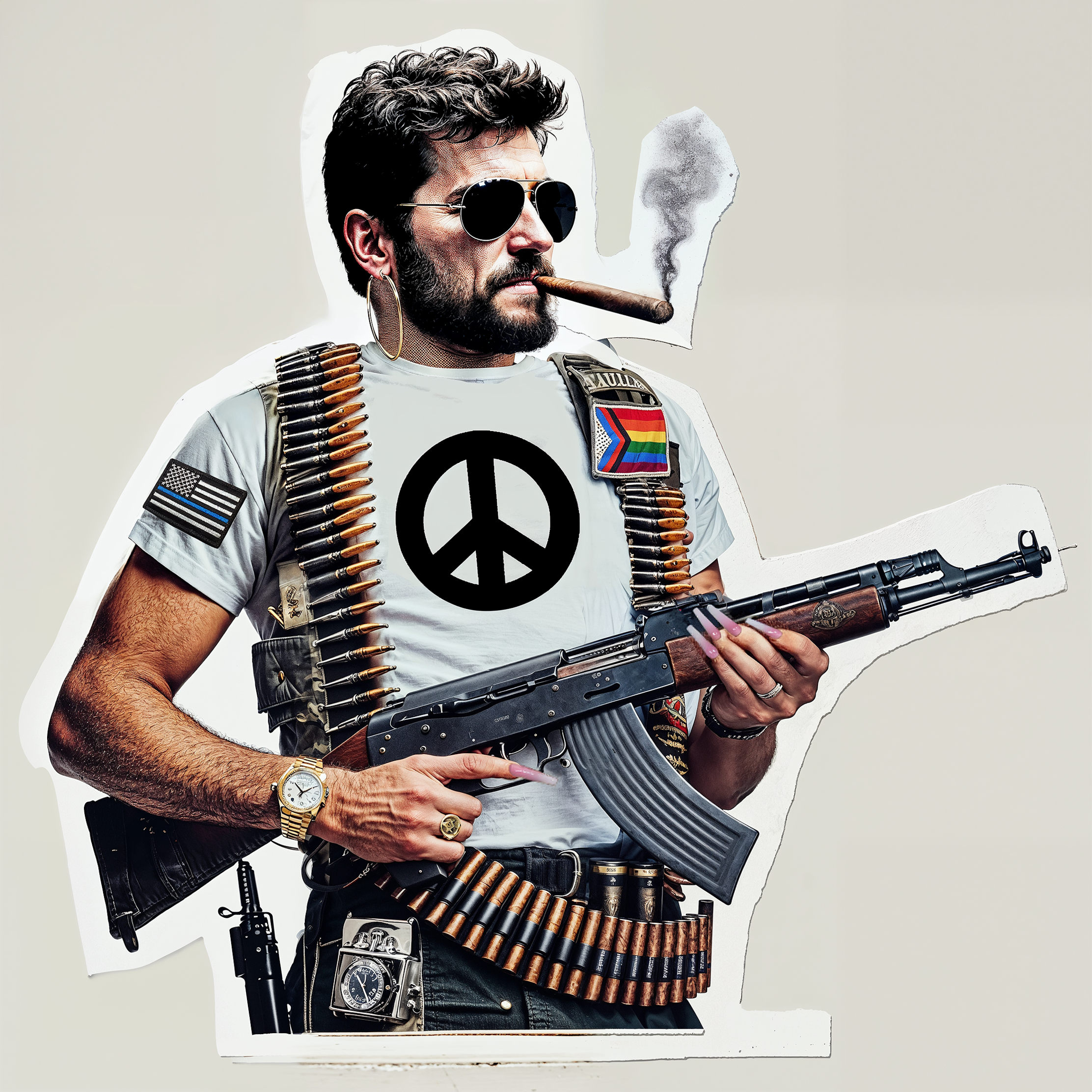 ChatGPT: The polarization of American society is deeply entrenched in the conflict between extreme right- and left-wing ideologies. On one side, there’s a fervent belief in individual freedoms, often associated with militarism, patriotism, and traditional values. On the other side, progressive ideals focused on equality, social justice, and peace. These polarized views create cognitive dissonance when attempting to define a singular American cultural identity. Both sides claim to represent the 'real' America, leading to intense division. The coexistence of these opposing forces within the same society makes for a stark and often contradictory image.