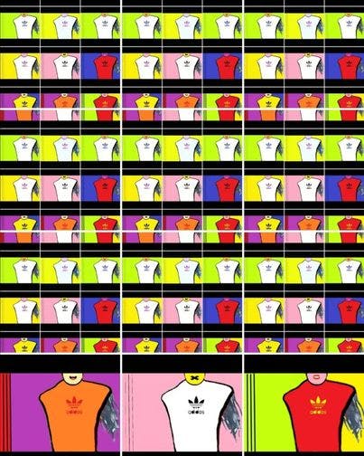 Vuole essere omaggio della collezione e della collaborazione con The Hug per la vendita di merchandiser legato a questa grafica, un lavoro che nasce dalla carta al digitale, per effetto estremamente pop.