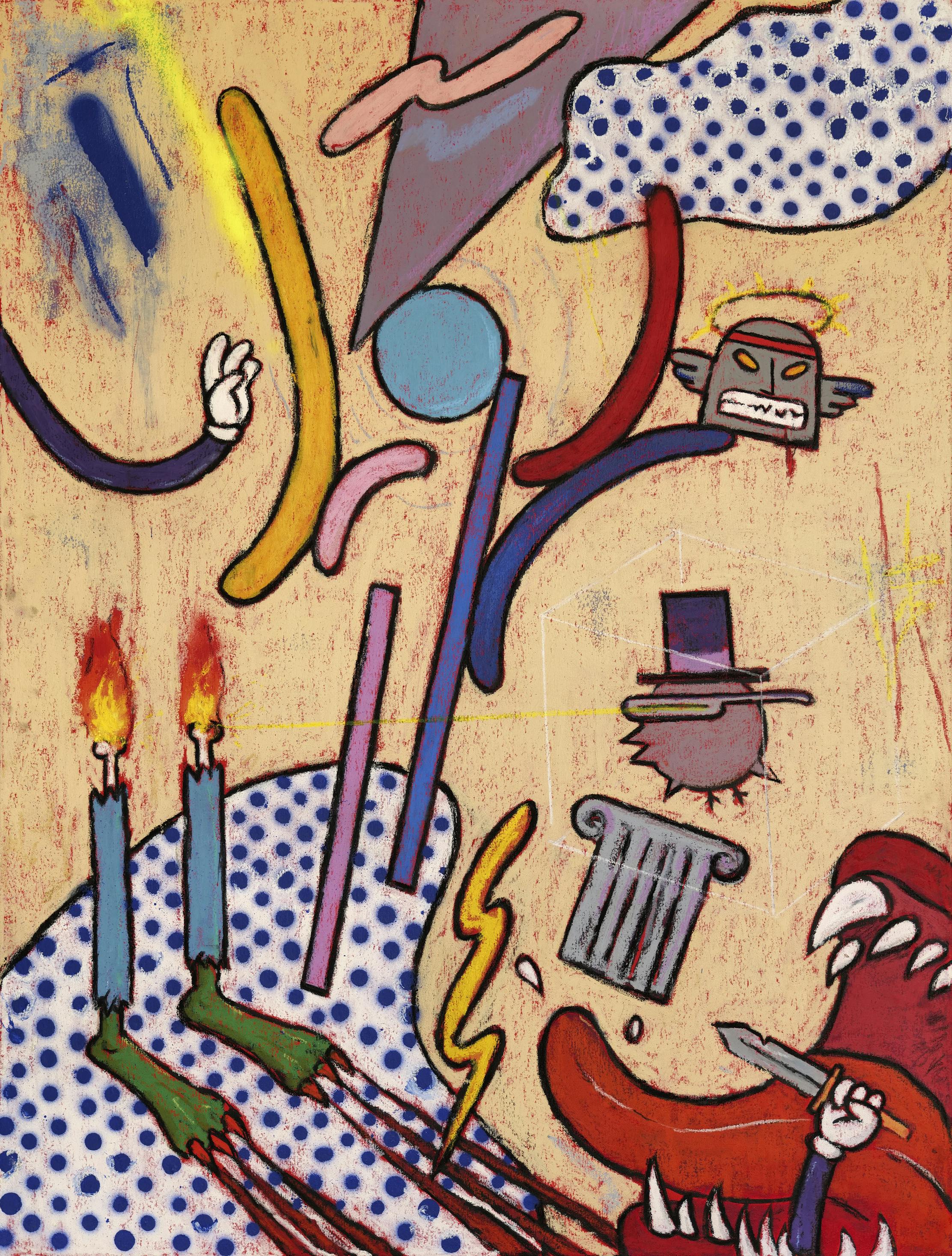 Oil pastel, oil, spraypaint on canvas