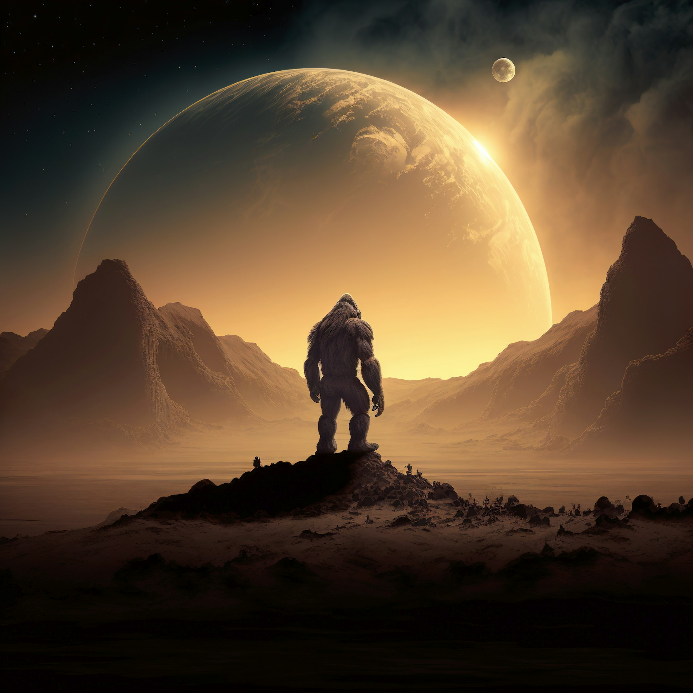 Bigfoot, aka Sasquatch, the Abominable Snowman or Yeti, is a creature with a long history of blurry photos and video clips. Dramatically, these now include mysterious images from the Mars rover Spirit that look like such a creature reclining on a rock. These sightings captured my imagination because… what was Bigfoot doing on Mars? Was he from there? Was he loney? Would he ever return to Earth? Also, does this prove there’s hidden water on Mars? So many questions. I felt that AI had the answers.