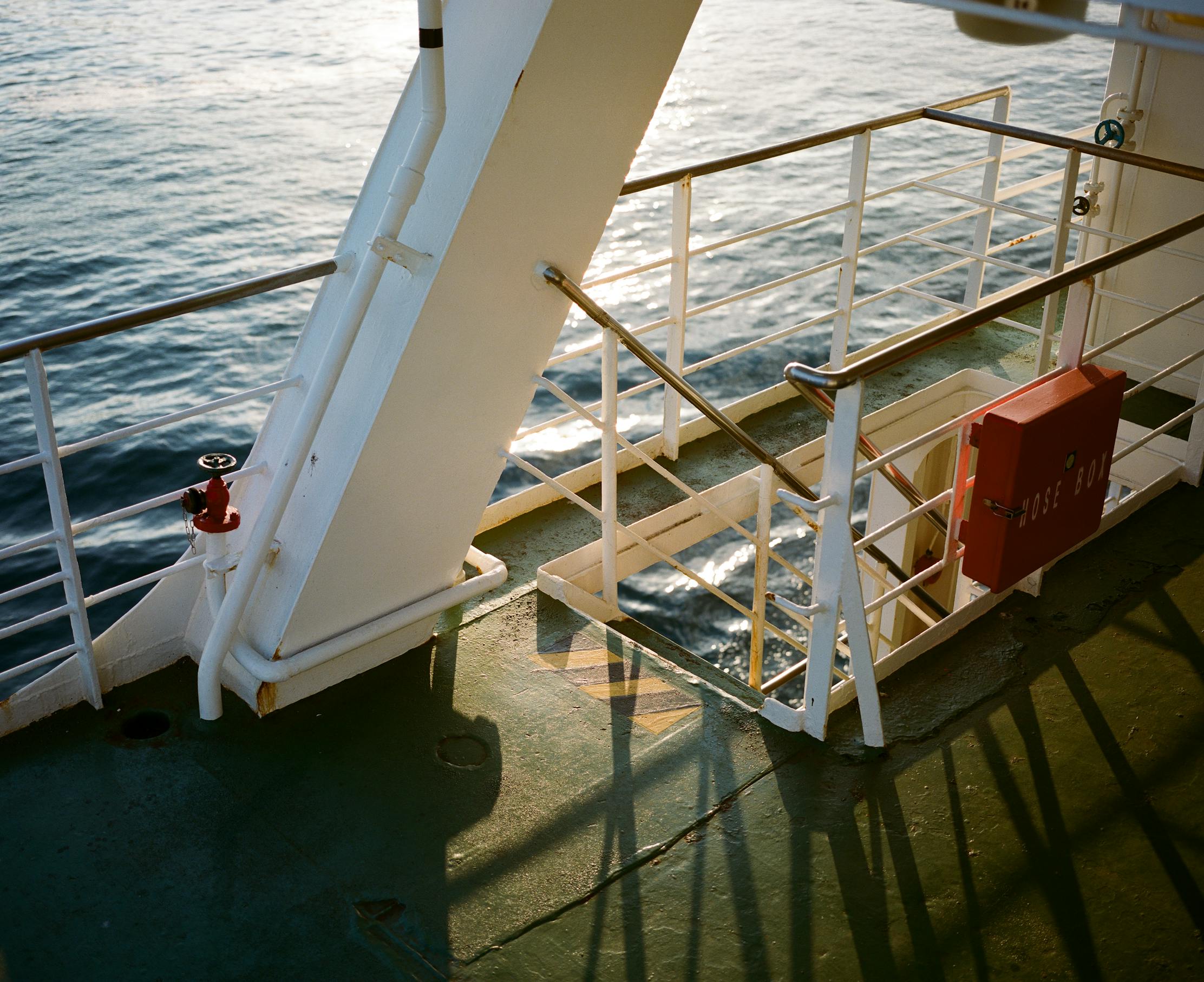 Enveloped in the warmth of the late afternoon sun, chasing fleeting patterns became a whimsical pursuit, turning the journey into a mesmerizing interplay of luminosity and shade on the sunny side of the Tokyo Wan Ferry.