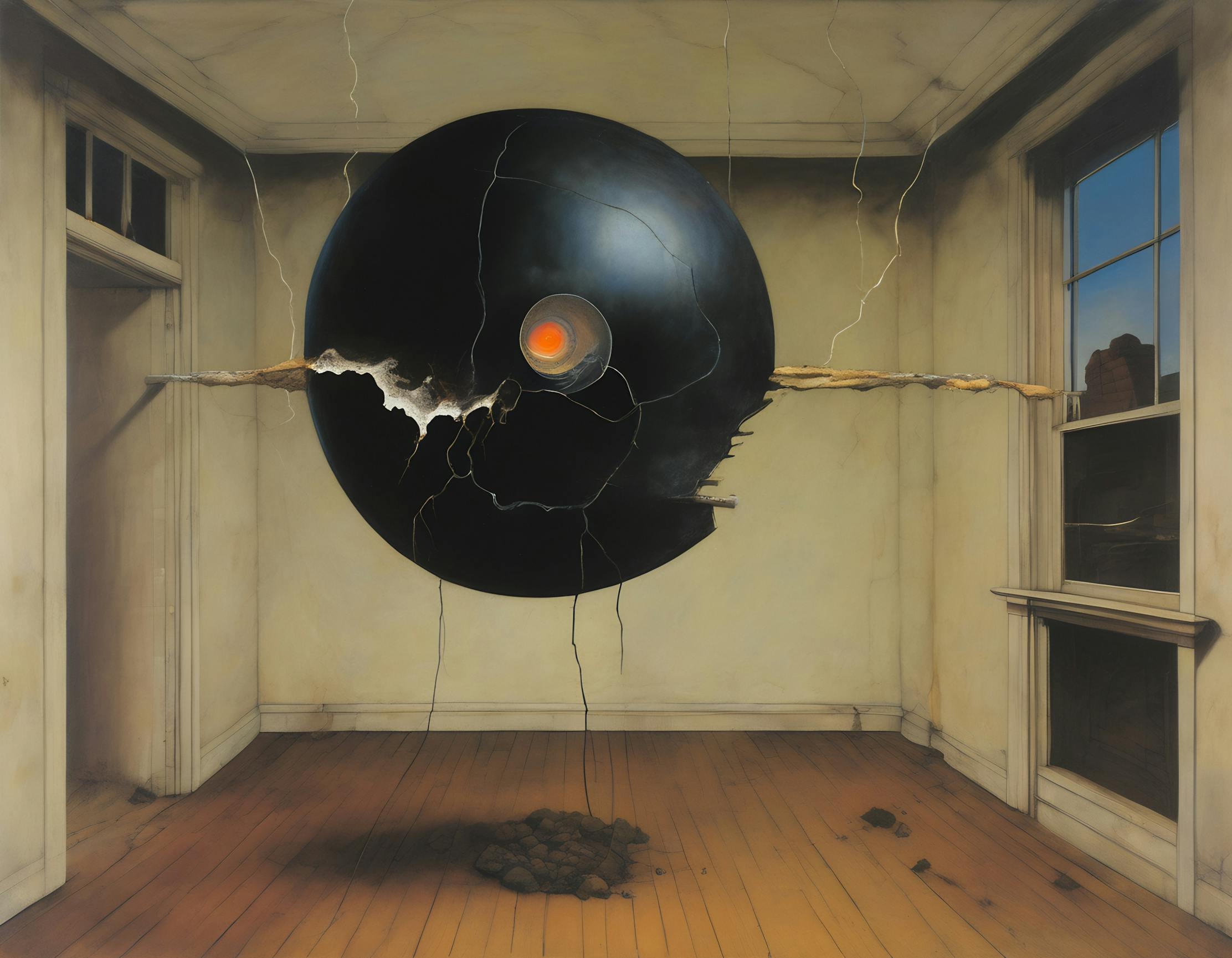 There is violence in this rupture, yes, but also strange tenderness in how carefully it hovers. Between the known and unknown lies this moment—suspended like the sphere itself. We build rooms to feel safe from vastness. The vastness finds us anyway.