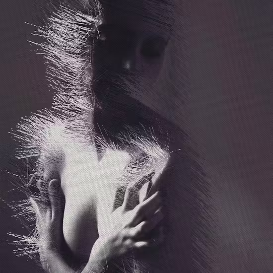 The chaotic brushstrokes symbolize images that return without permission.