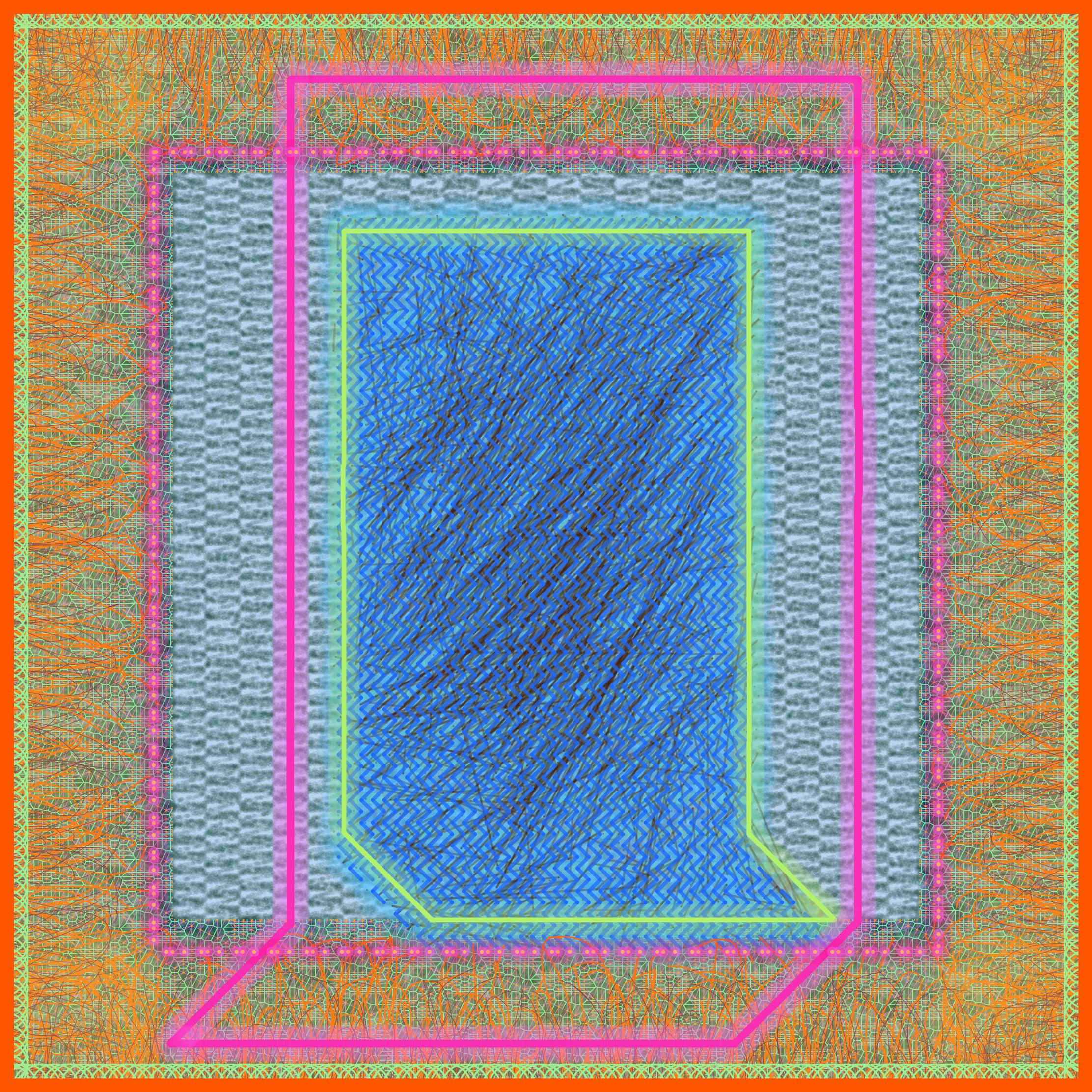 Created as an extension of investigating the door as a symbol in both the artist's life and broader culture. The artist creates his digital paintings using custom software. He selects and changes variables by hand, layering the output of the generative algorithms he's been writing since 2014. This process allows him to more rapidly and accurately manifest the vision in his mind's eye, compared to the physical materials he began his artistic career with over 20 years ago. After Yukio Ota's ISO Standard exit sign.