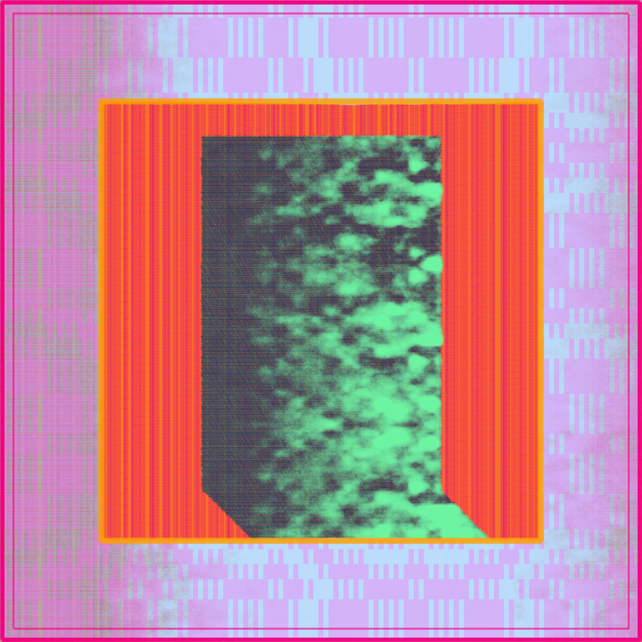 Created as an extension of investigating the door as a symbol in both the artist's life and broader culture. The artist creates his digital paintings using custom software. He selects and changes variables by hand, layering the output of the generative algorithms he's been writing since 2014. This process allows him to more rapidly and accurately manifest the vision in his mind's eye, compared to the physical materials he began his artistic career with over 20 years ago. After Yukio Ota's ISO Standard exit sign.