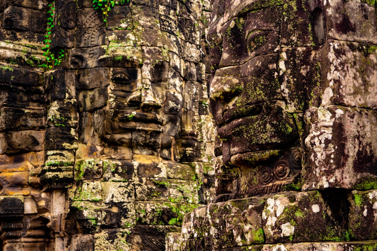 Can you find all the faces? Haunting ruins like these at Angkor Thom are all that remains of the former capital of Angkor Wat, the great Khmer kingdom that ruled the entire Mekong river basin between the 9th and 13th centuries. At the center of this complex is the Bayon, and the Temple’s most distinctive feature are the 200 plus gigantic, serene and smiling stone faces on the many towers which jut out from the upper terrace and cluster around its central peak. Their enigmatic gazes guard the walls of the city giving one the feeling that they are watching your every step.