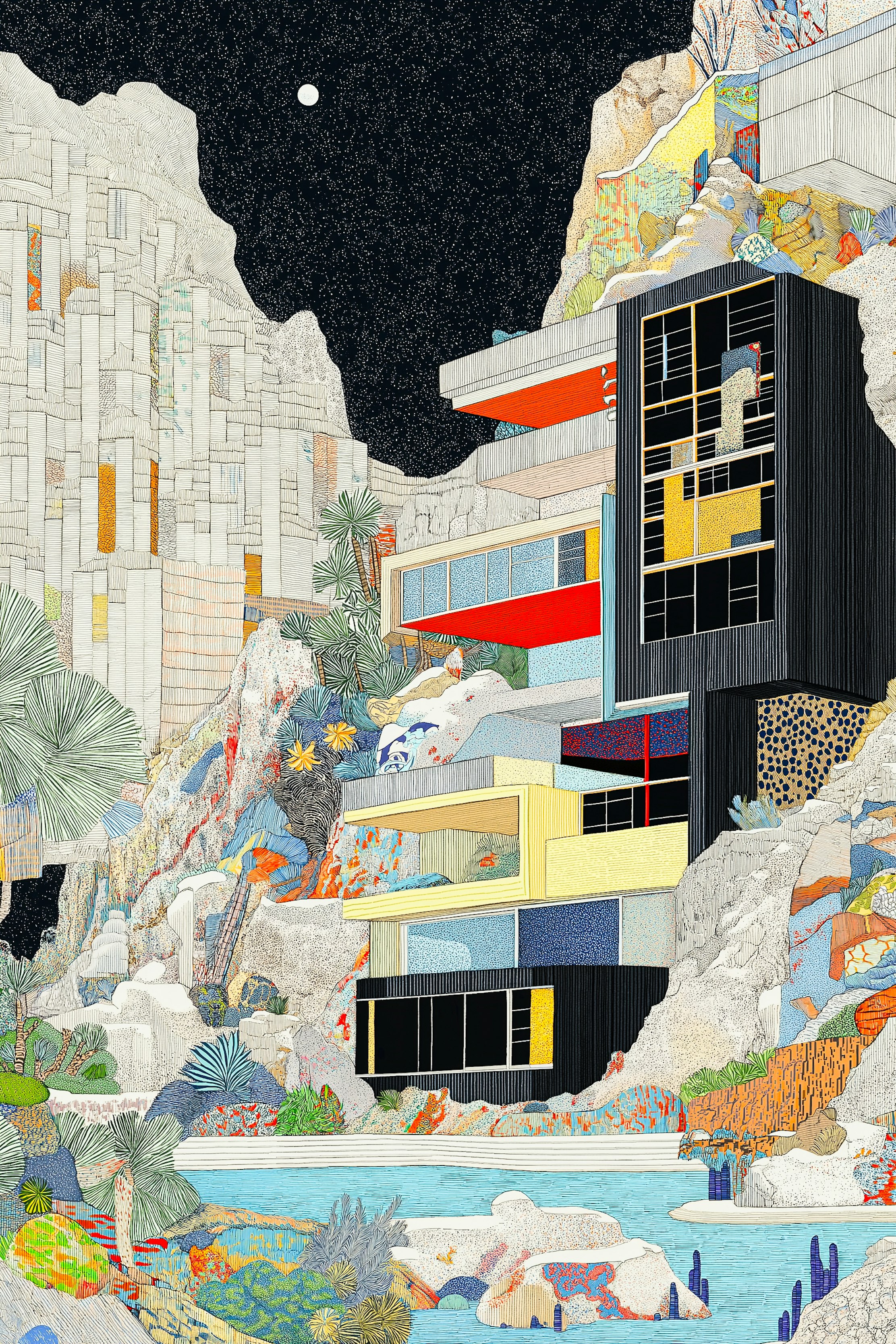 ArchiTextures is a digital art collection by Richard Nadler that explores the delicate tension between architecture, texture, and emotional landscape. Drawing inspiration from iconic mid-century modern architecture, the collection transforms structural forms into a visual language that is both graphically precise and poetically charged.