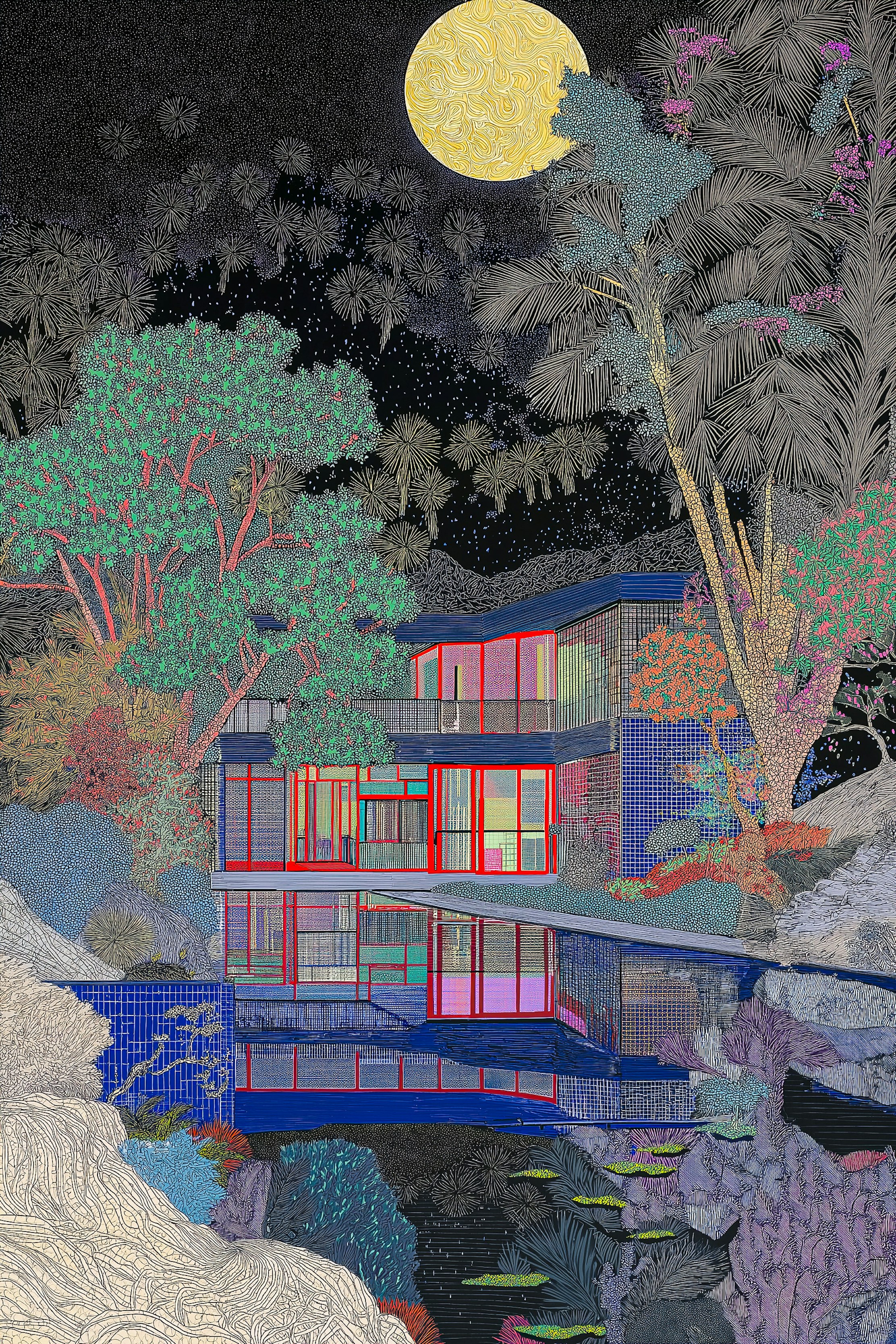 ArchiTextures is a digital art collection by Richard Nadler that explores the delicate tension between architecture, texture, and emotional landscape. Drawing inspiration from iconic mid-century modern architecture, the collection transforms structural forms into a visual language that is both graphically precise and poetically charged.