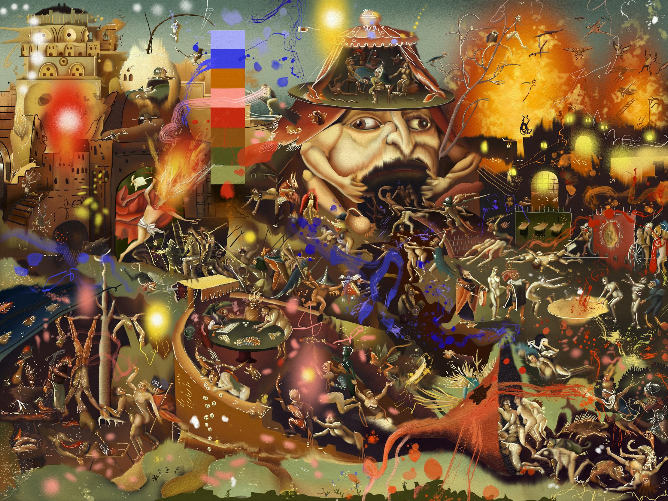 In "Living in Limbo," I drew inspiration from Bosch's school and digitally reinterpreted it without using artificial intelligence. By employing digital tools, I abstracted forms, colors, and symbols, proposing a new visual narrative. My goal is to transform the visual and conceptual experience of the original work using technology as a substitute for traditional materials like oil paint.