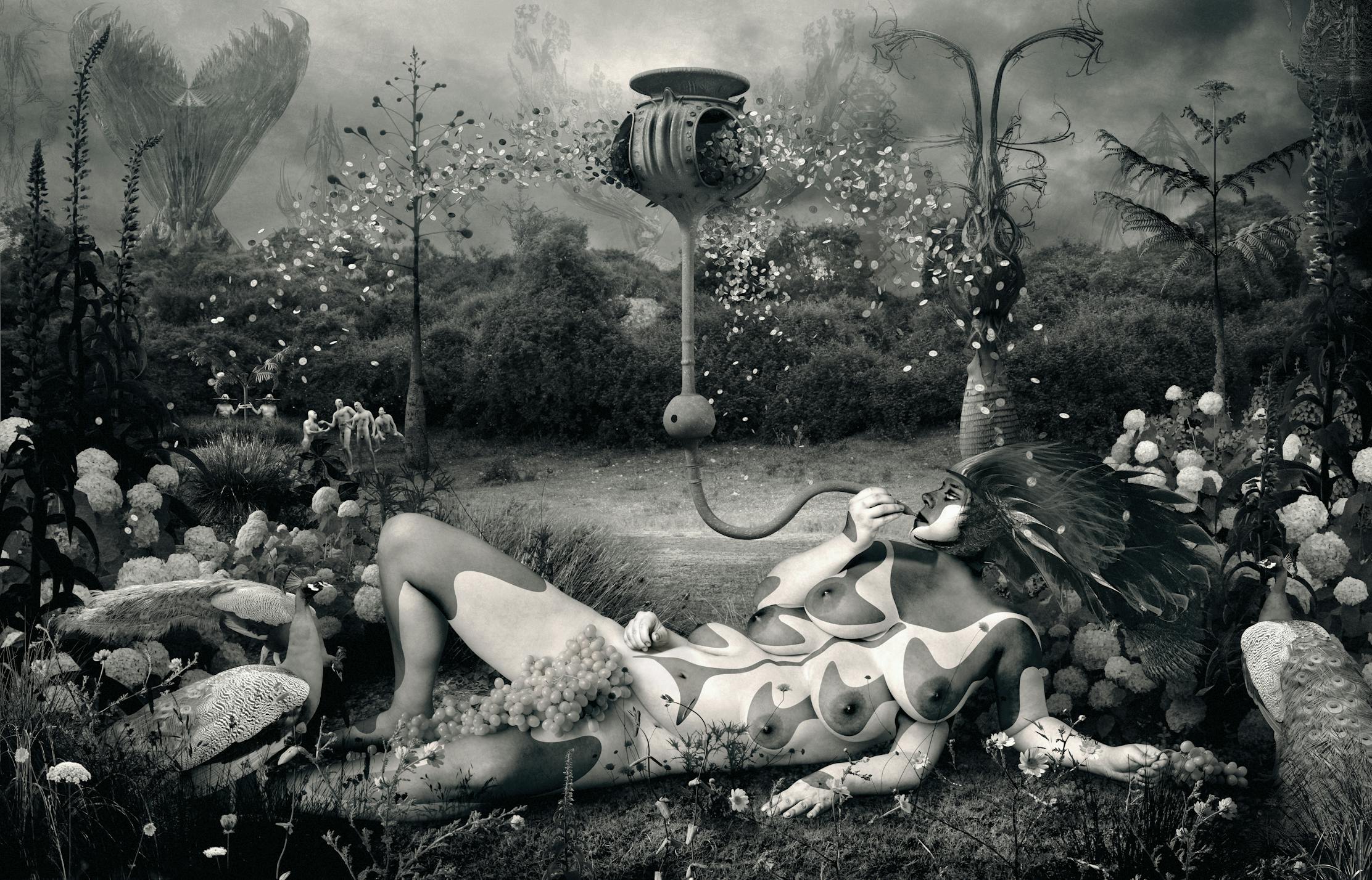 Cornucopia is part of the open project entitled "Sodom and Gomorrah", a series of staged photographs begun in 2000 and inspired by the work Invisible Cities by Italo Calvino, a famous Italian writer whose centenary is being commemorated this year from his birth.
