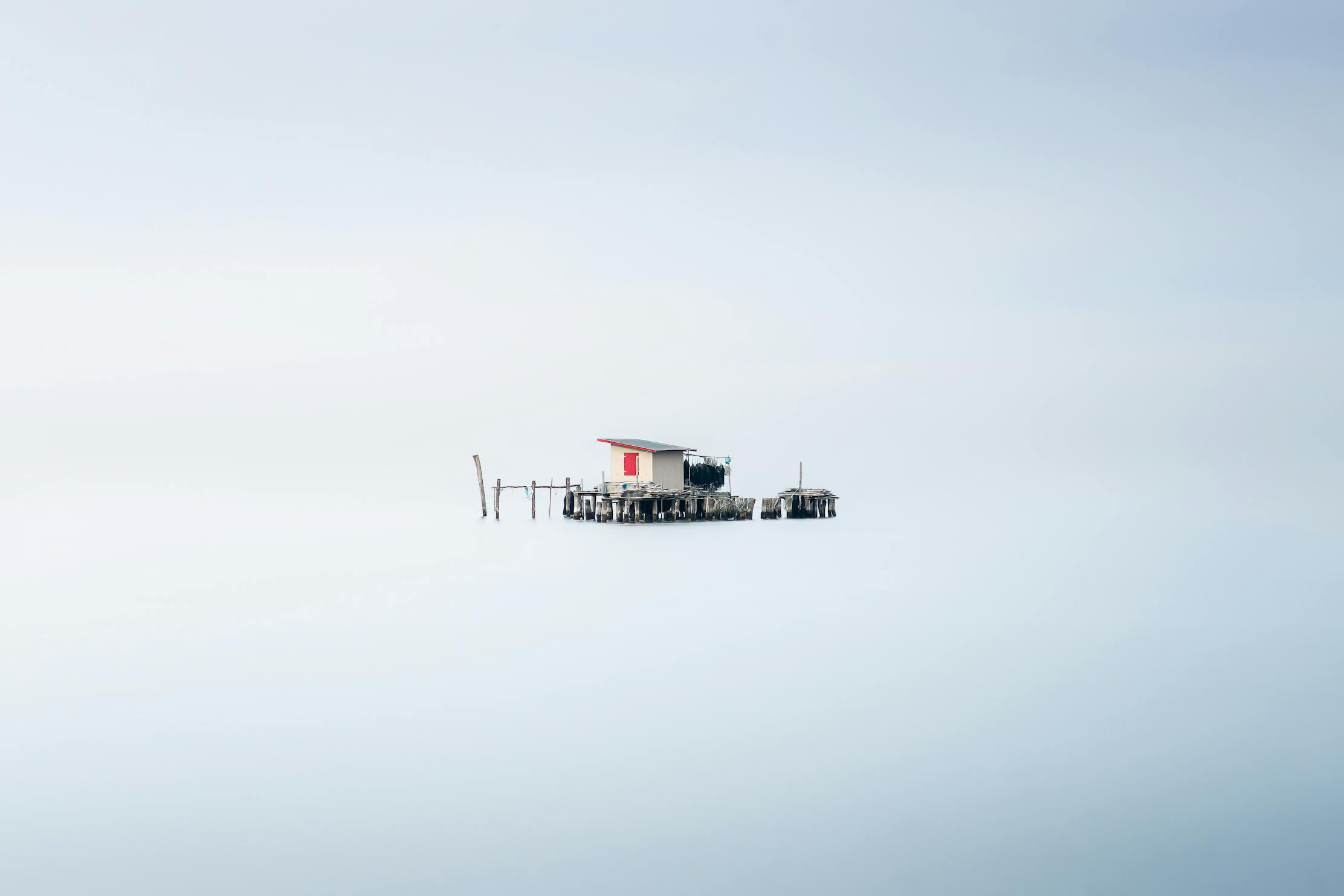 Amidst the vastness of the lagoon, the fishermen's cottages stand as solitary homes in harmony with their surroundings. Each image captures the essence of these "Waterhomes," immersed in an ambiance of tranquility and stillness. The minimalistic composition enhances the elegance of these structures, while the conceptual focus invites reflection on the contrast between human fragility and the vastness of nature. The combination of subtle tones and soft colors immerses us in a timeless atmosphere, where time seems to stand still.