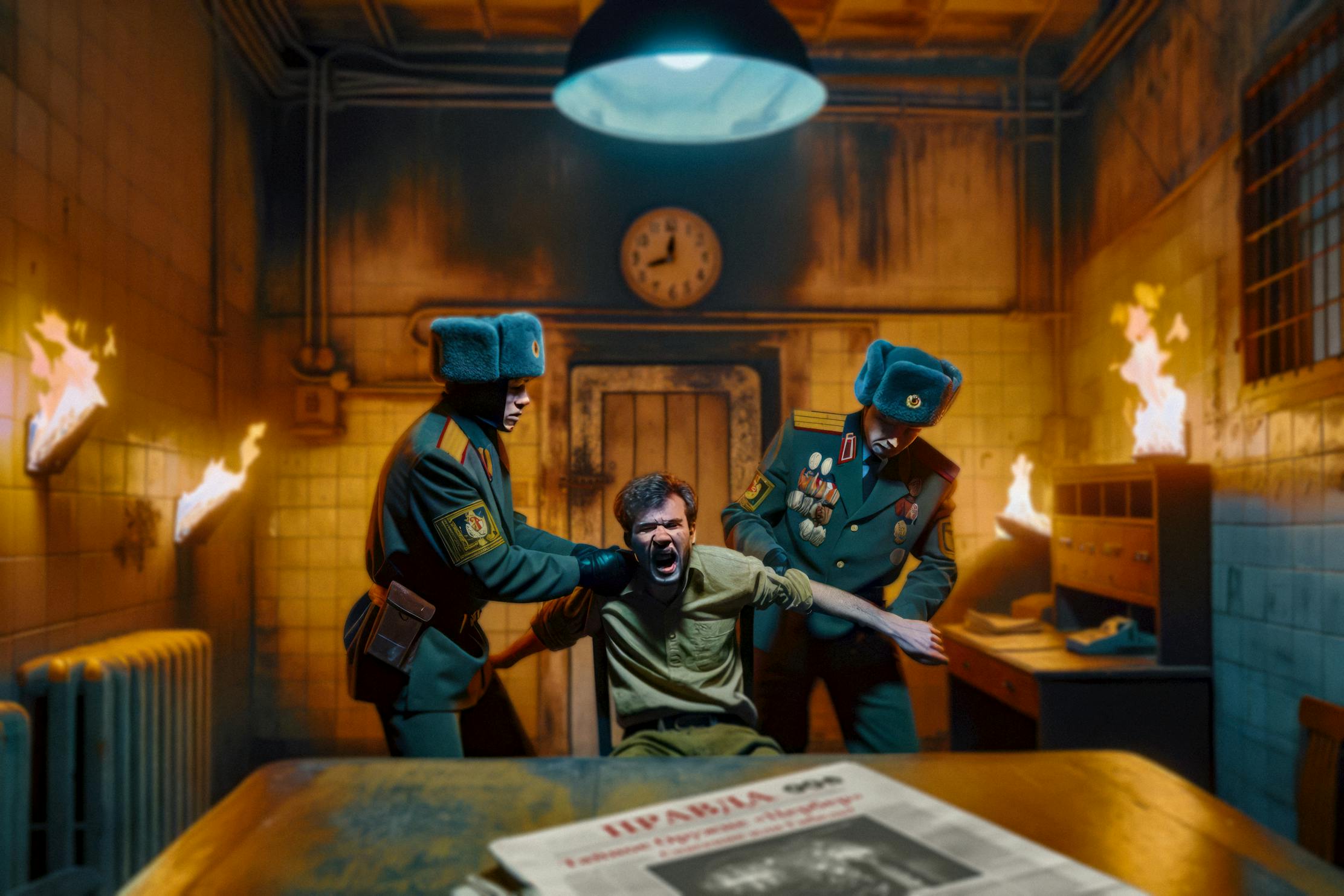 Yet, it's this very audacity that ensnares Rostov. Subsequent to his revelations, his life takes a chilling turn as he's ensnared in the stark confines of a KGB interrogation chamber. The room's heavy tension is palpable with the display of his courage: the PRAVDA newspaper with his groundbreaking story. In that heartbeat, he believed he had reshaped history, possibly averting an impending apocalypse. How profoundly he was mistaken.