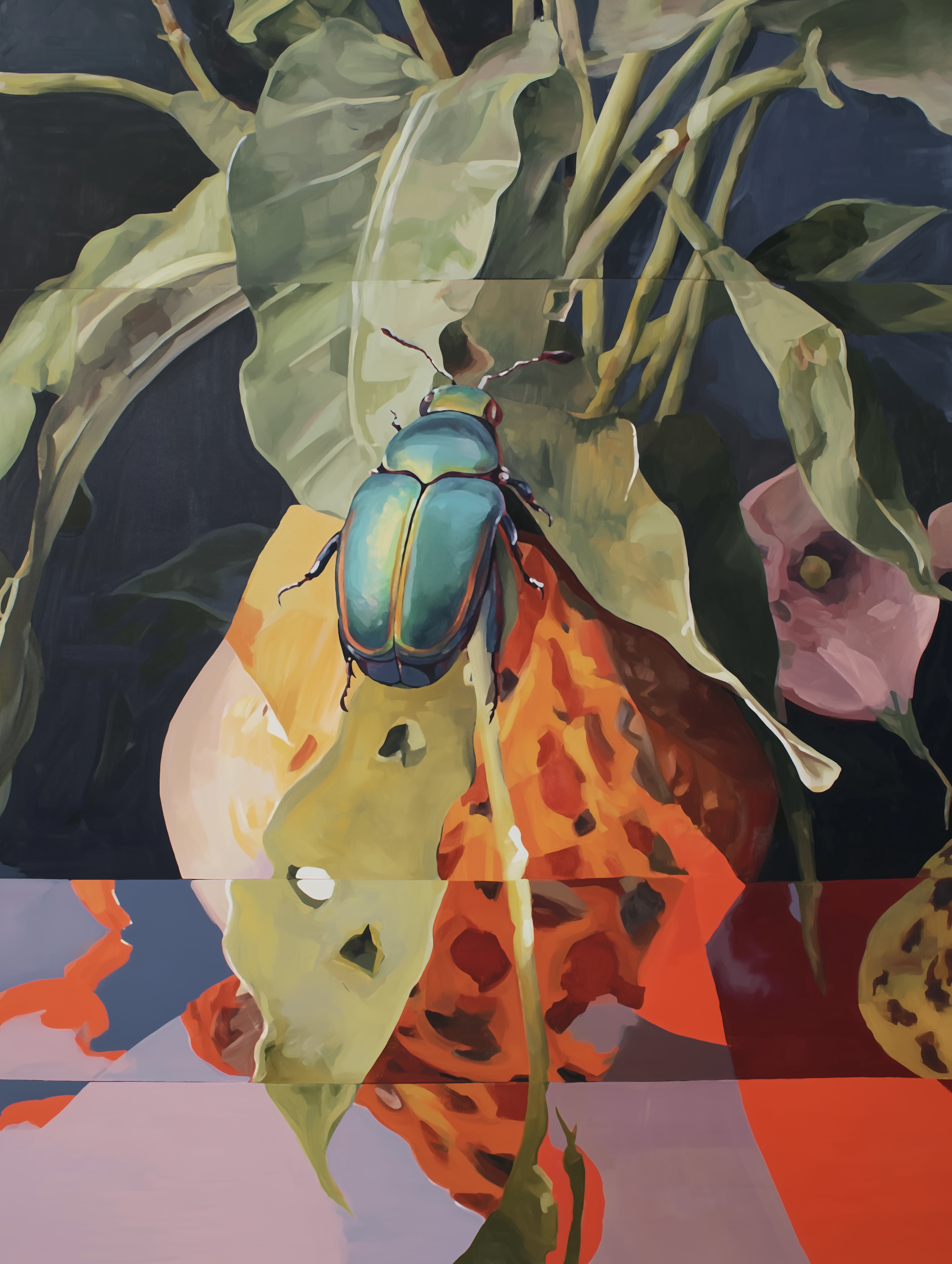 I adore beetles, I even have two tattoos of them. This one, the Figeater, is a common metallic green fruit beetle that is very clumsy and harmless in the summertime.