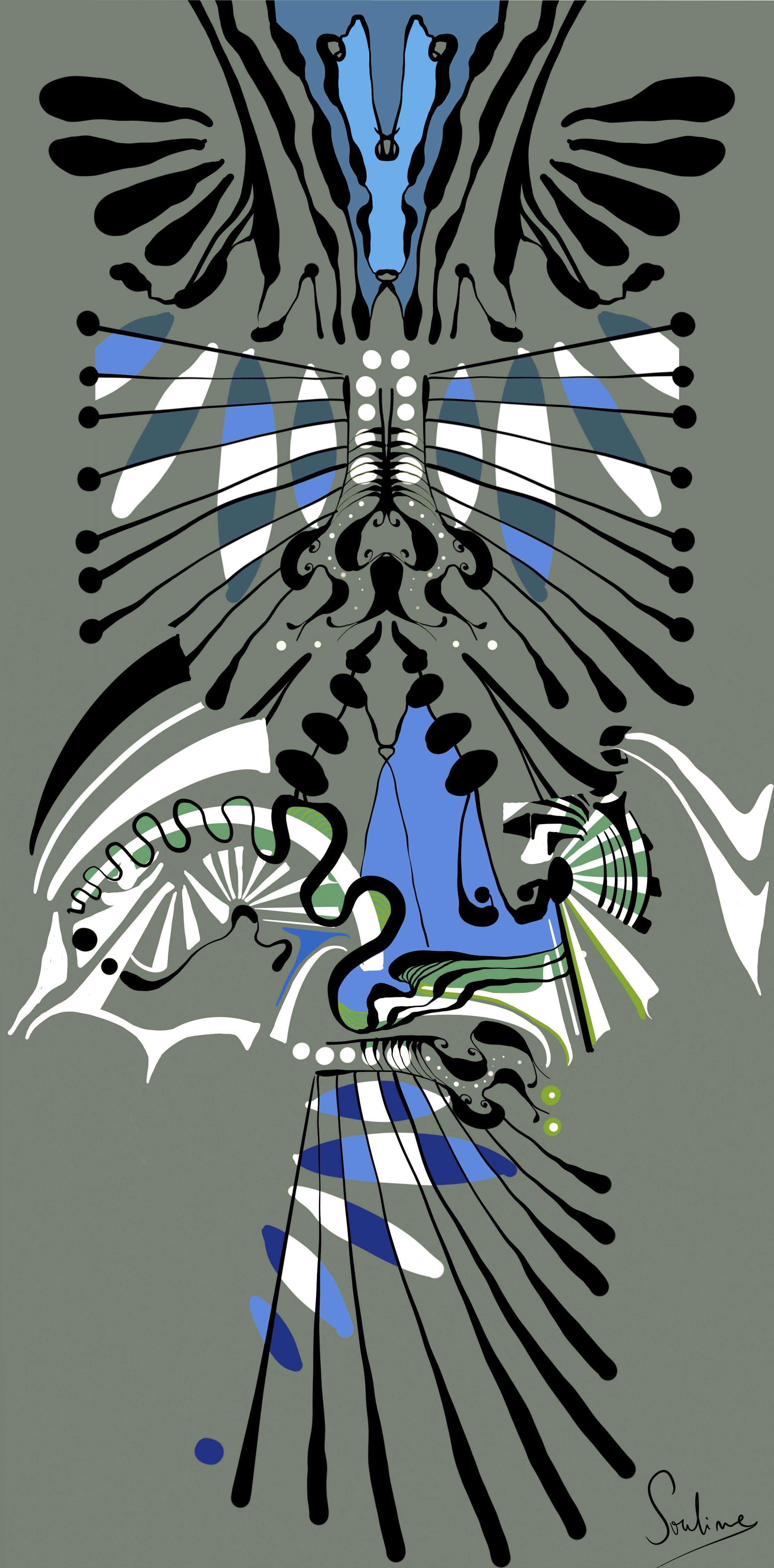 Each piece in this series has a replica in the material world. With the acquisition of the nft the collector will receive a Kimono in which the same work is replicated. In this way, the artist's language is translated from one medium to another, as a form of expansion that is shared.