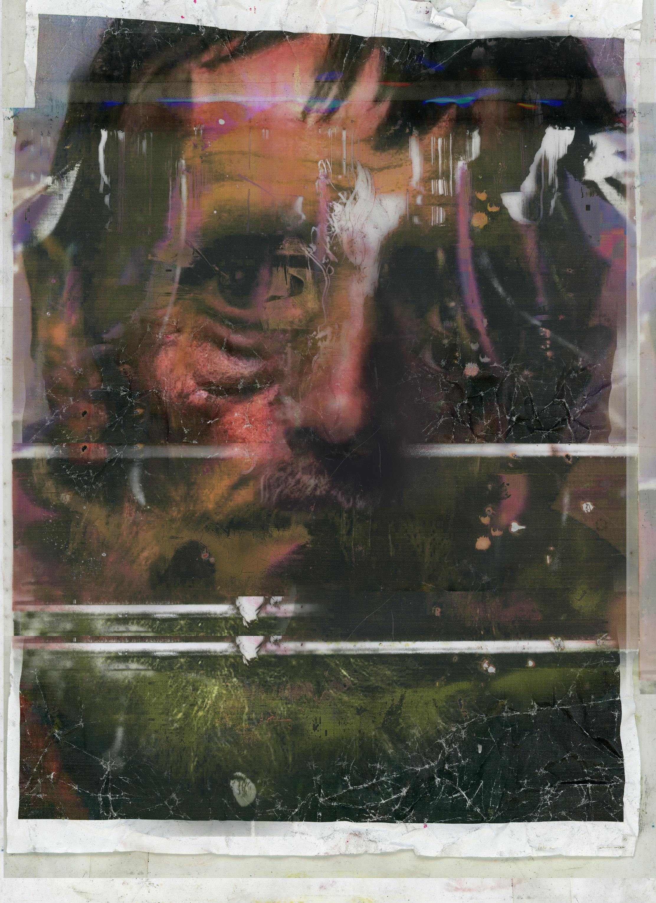 A human portrait prompt filtered through AI, filtered through the artist, to create machine-readable digital art viewed on backlit liquid crystal displays.