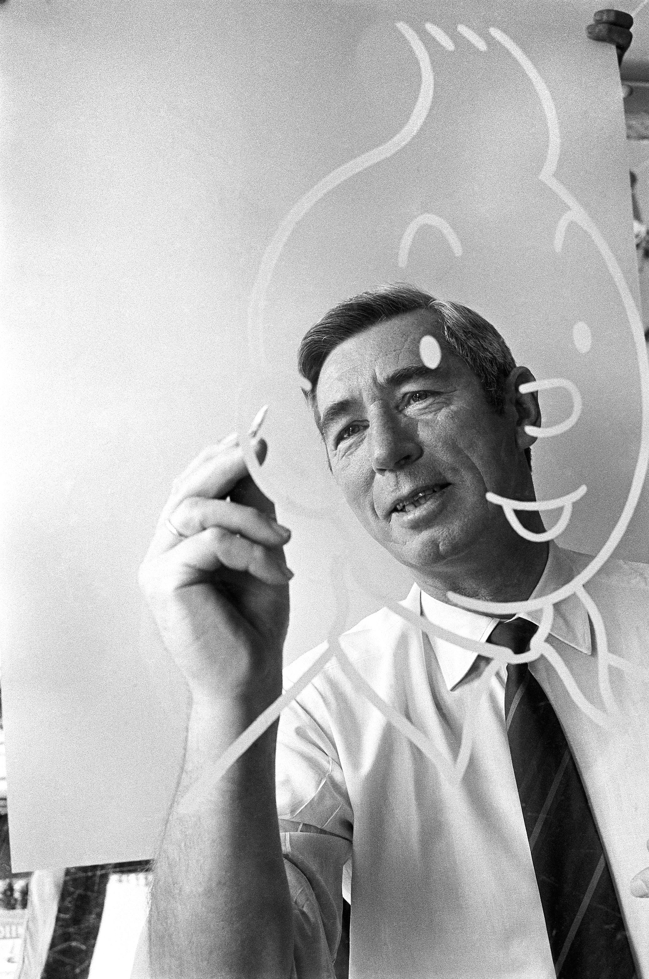 Brussels, 1966: Hergé drew his cartoon hero onto a storefront window to celebrate the 20th anniversary of Tintin, the “magazine for young people ages 7-77”. Paris Match photographer Christian Gibey recreated the scene used in Henri-Georges Clouzot’s 1955 documentary The Picasso Mystery to show Picasso at work.