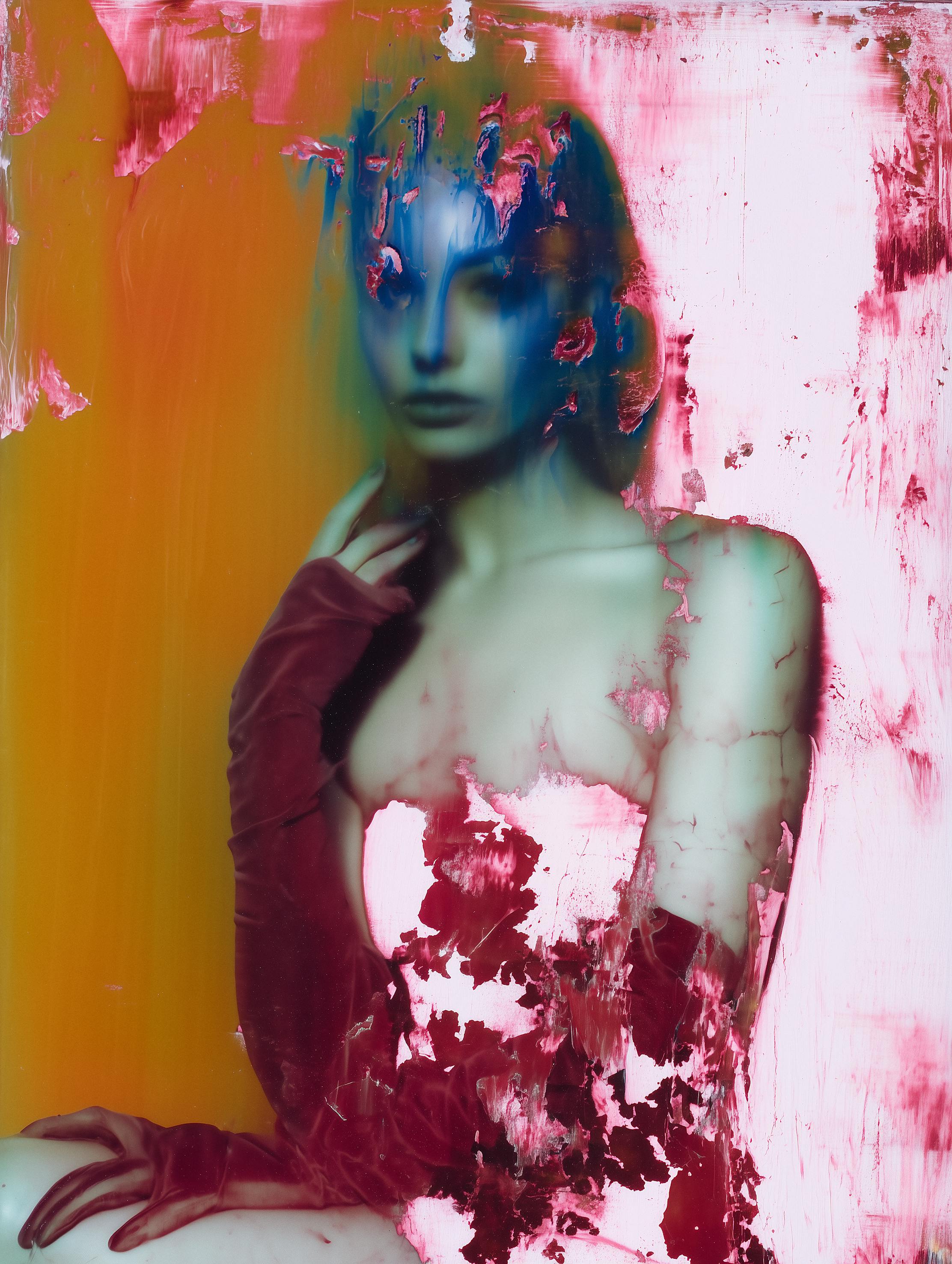 In this work, the portrait resists coherence. The figure appears only to disintegrate, her image caught in a fragile state between formation and collapse. Layers of saturated pigment and digital erosion stage a dialogue between beauty and disappearance, suggesting that identity itself is never fixed but always emergent. What begins as a likeness dissolves into painterly abstraction, a visual record of the machine’s faltering attempt to hold memory in place.
