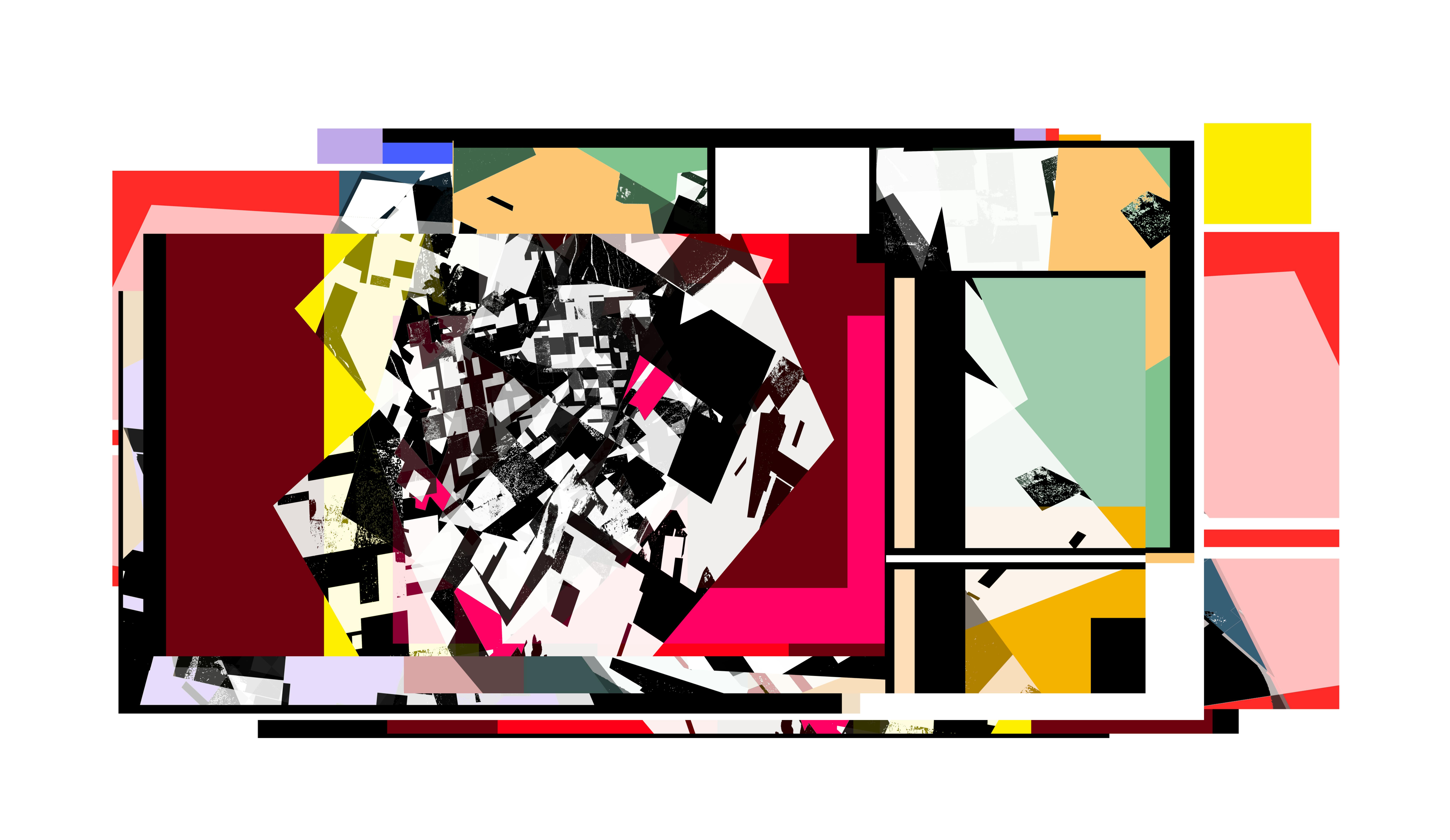 This is my first series in color. It took me 11 years to get serious about working with color. Everything began simple: black acrylic paint on cheap white copy paper. Years ago, I scanned my early spatula works, preserving their raw, unfiltered textures. Over time, they became the foundation for my own style and aesthetic, leading to a wide range of black-and-white artworks. With the help of artificial intelligence, I created a custom tool named 'Nogen'. Using it, I deconstructed my artworks, rearranged them, and let them discover new forms… And Then I Added Some Colors.