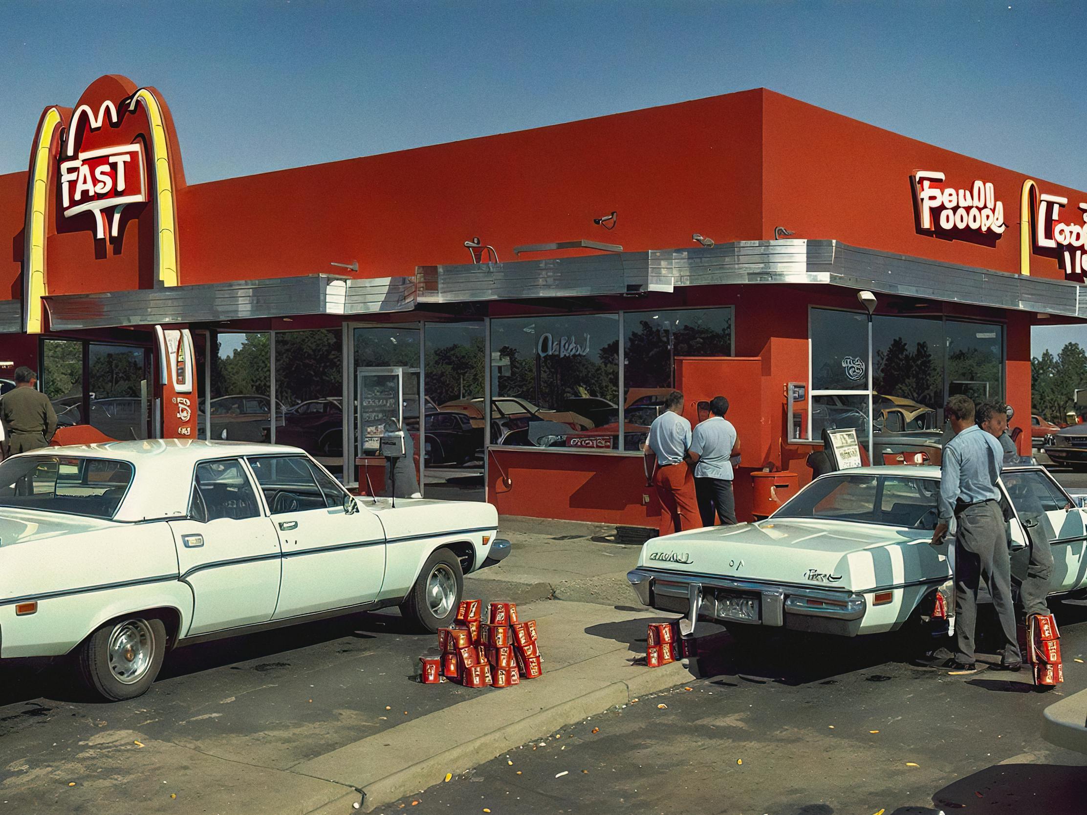 Created in 2022, Rainisto employs the visual style of vintage Americana photography and the capabilities of early custom finetuned diffusion models. Each piece captures the post-war United States atmosphere, examining mass production, overconsumption, excess and food uniformity. It draws parallels between the mass production of fast food and AI’s emphasis on efficiency and scalability, suggesting a trend towards cultural and creative homogenization.