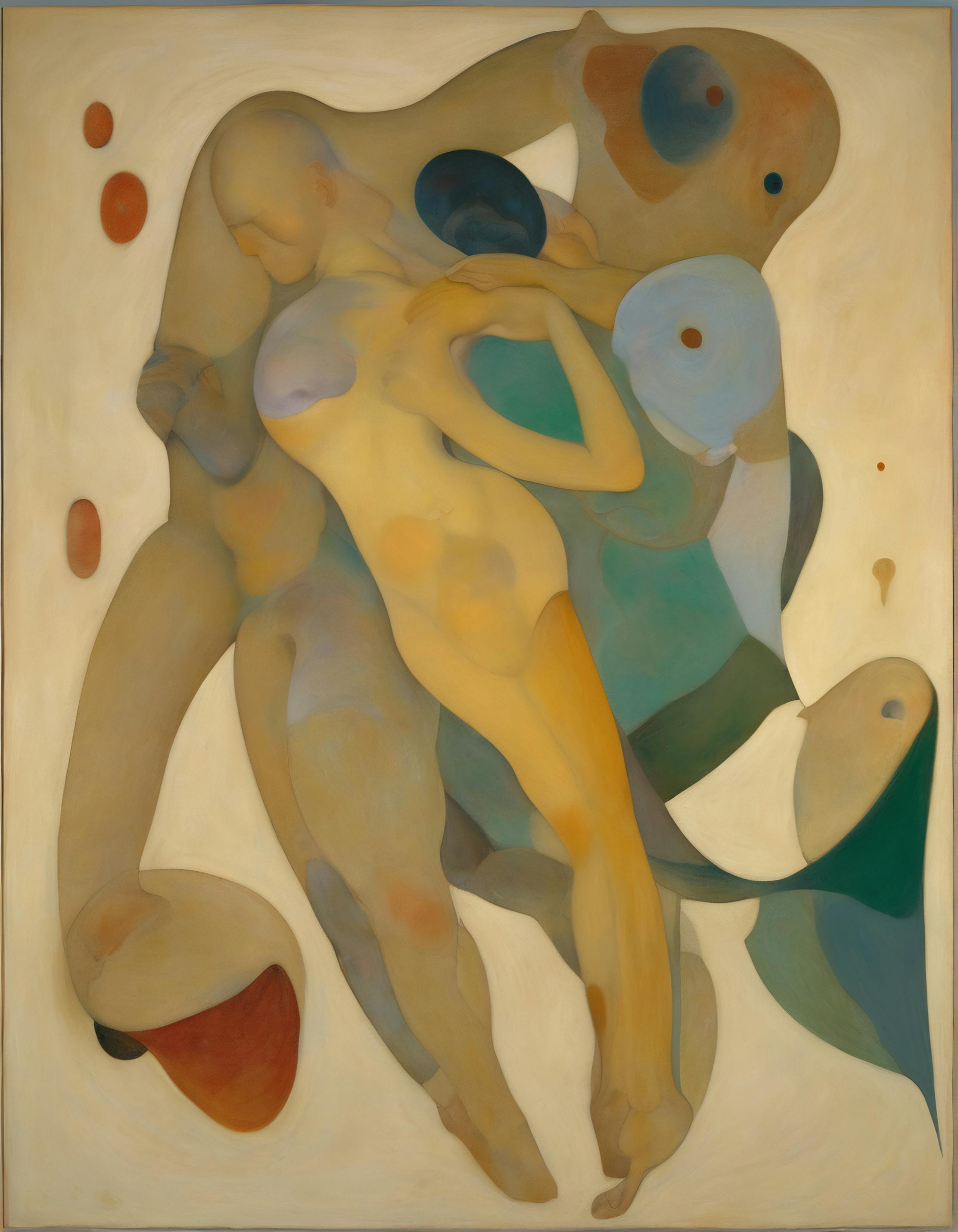 2024 August #008. The cluster of forms ebbed and flowed, a testament to nature's inherent prowess to weave complexity from the loom of the improbable. Within the dance of these ever-changing shapes, two anchors defied the transience around them: mothers. Not mothers in the traditional sense, bearing children through their own bodies, but creators and sustainers of life in their own right, fashioning order from the maelstrom of potential that surrounded them.
