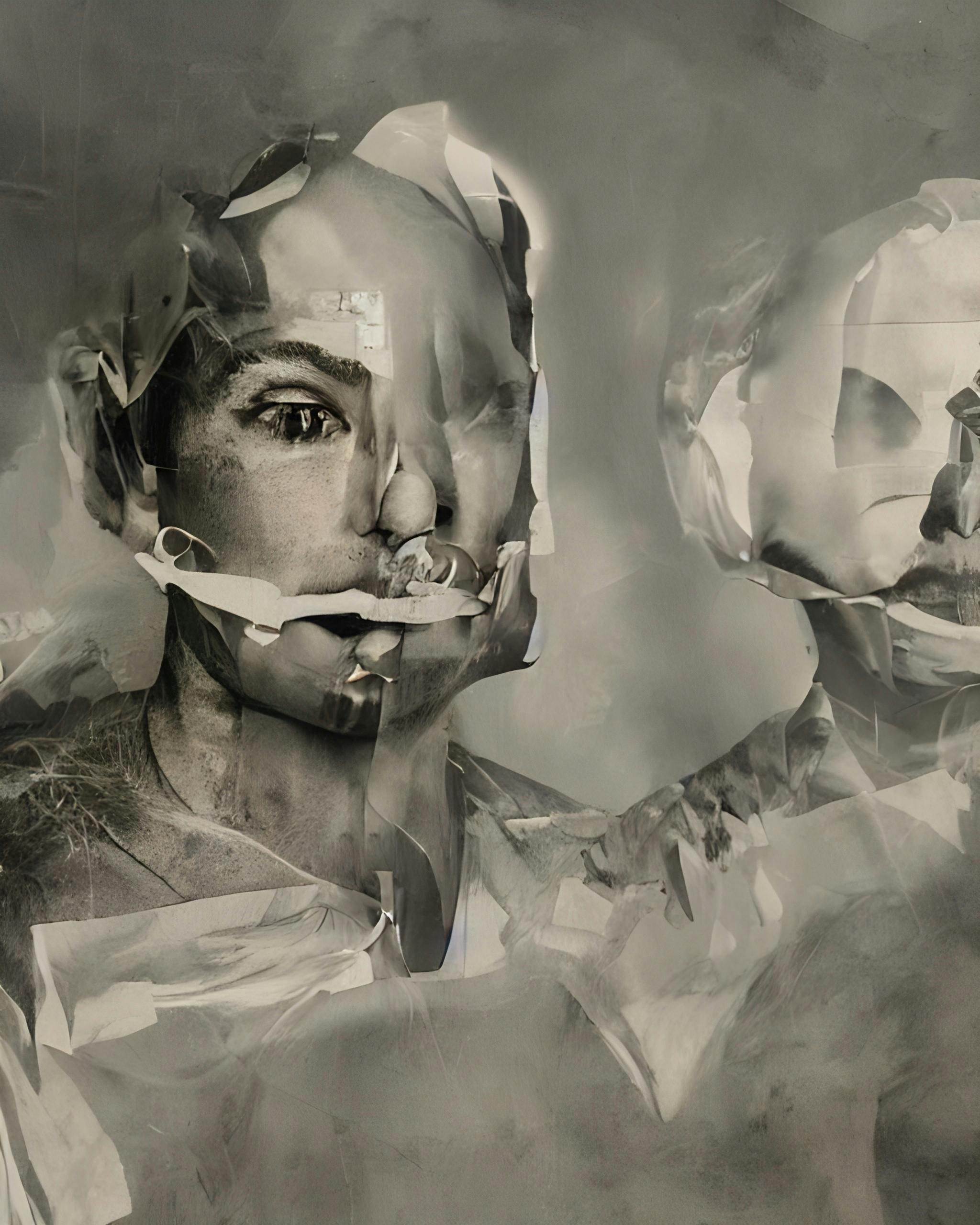 There's a delicate interplay between what was chronicled and what was overseen, perhaps purposely obscured by those paper veils. These faces, mere echoes of ancient existence, peer out from the torn edges of reconceived moments, asking us not what we see, but what we remember, and more urgently, what we have forgotten.