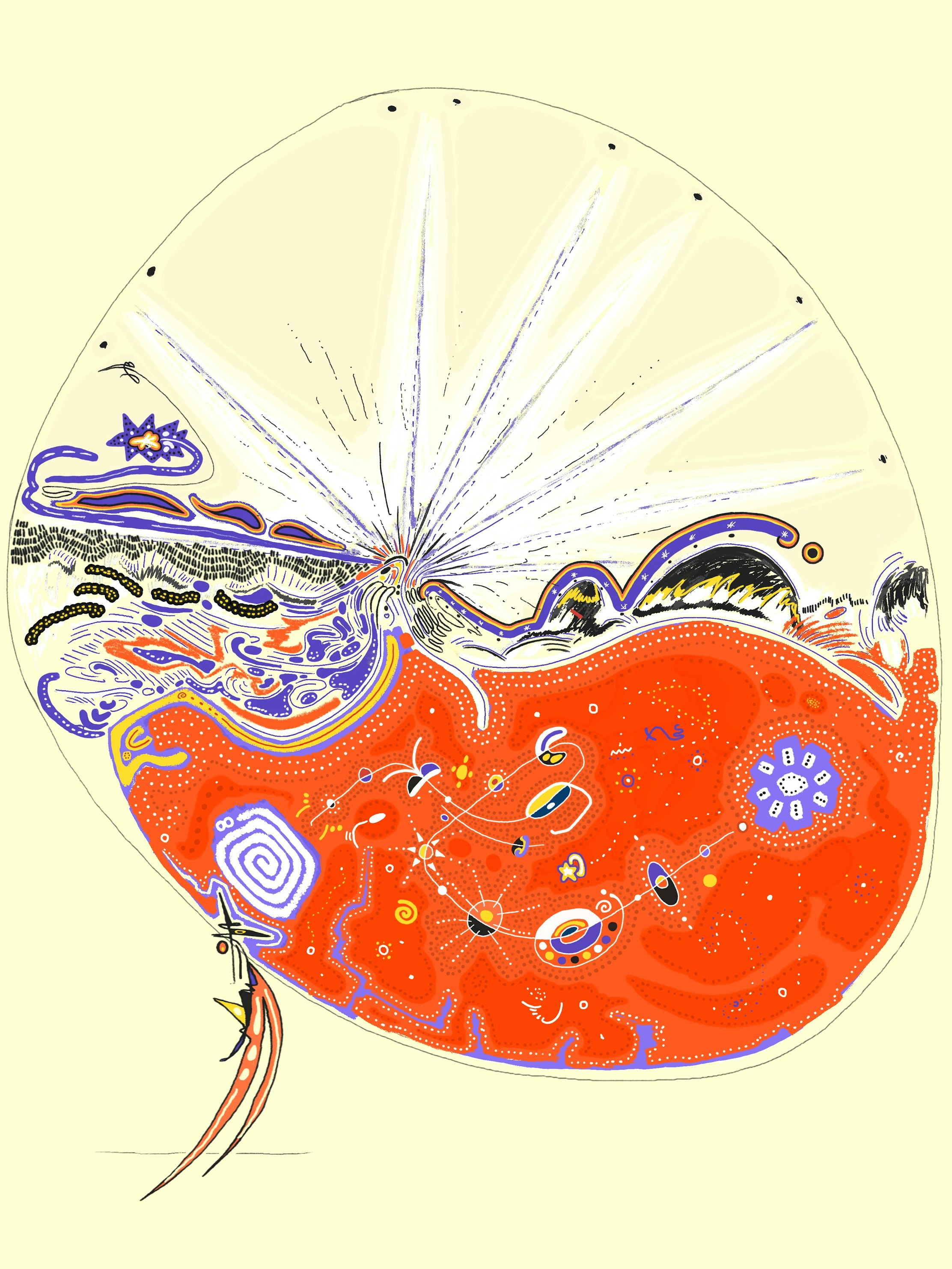 For omentejovem, Mapping the Unseen emerged through a process just as elusive as the title suggests. While the result may appear enigmatic, its creation was guided by instinct rather than calculation. At a certain point, the work – and the Stories on Circles collection as a whole – came to a standstill just before it was final for the artist. Too much emphasis had drifted toward conscious control, wanting to achieve a certain level, and something vital then fell out of reach. Only by letting go, by stepping back into moments of unstructured observation and quiet reflection, did the process regain momentum. This piece holds that shift: a subtle record of release and reconnection with the subconscious currents that shape the work beneath the surface.